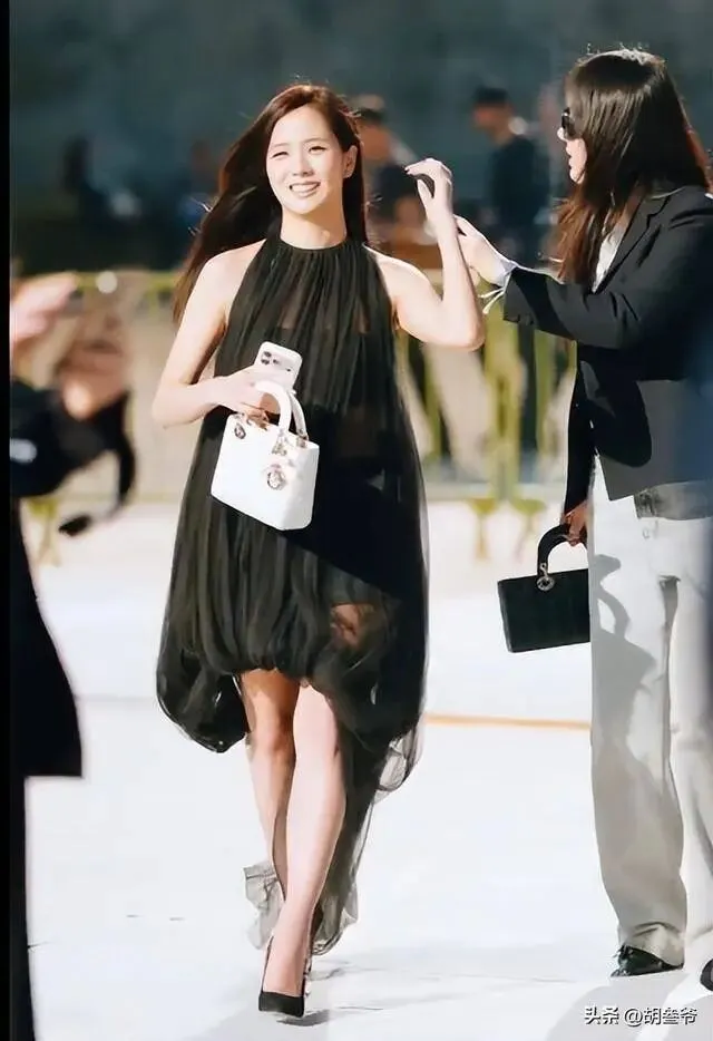 她穿的黑色蓬蓬微透视纱裙搭配复古盘发,甜美的长相配上优雅的造型,被粉丝喊作“迪奥公主”。