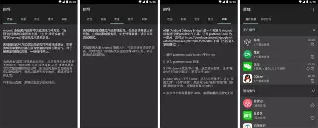 没有 Root 的安卓系统,需要通过 adb 命令才能开启黑域,而已经 Root 的用户也可以在引导界面按其次返回键来启动黑域进入 Root 模式,不过一旦重启手机黑域就有可能失效,需要重新进入。