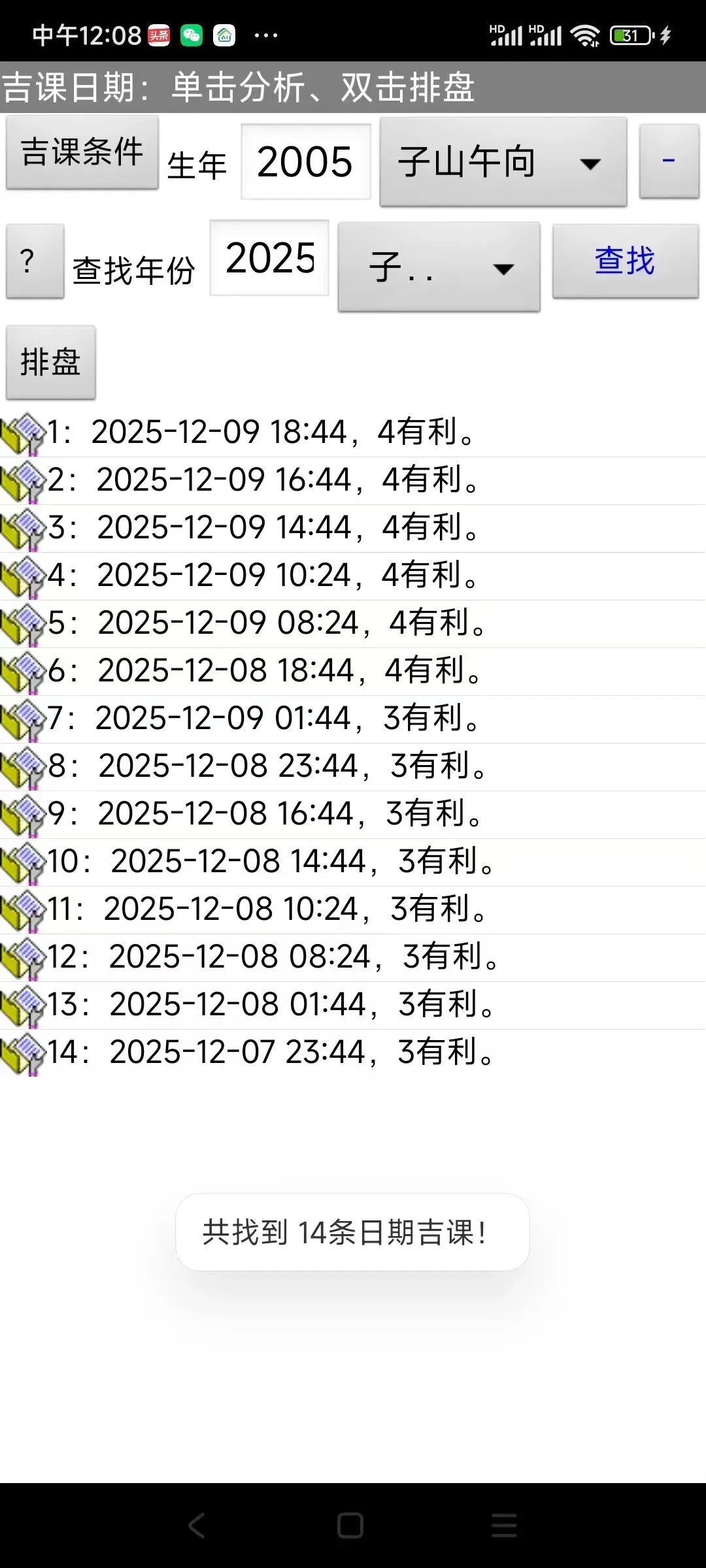 手机最新天星择日软件(带自动择吉功能)