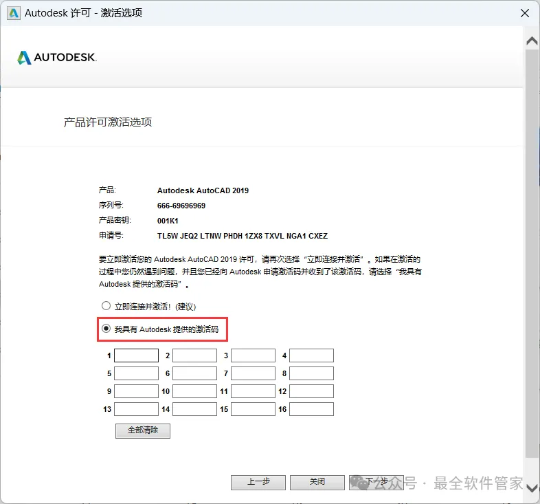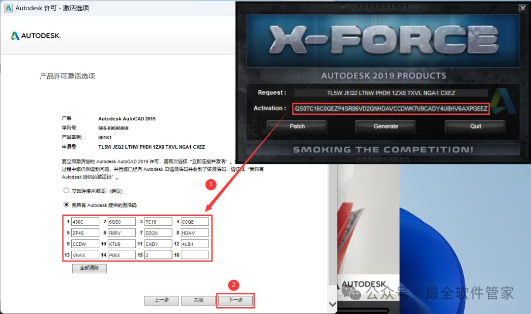 26、将程序的【Activation】填入到软件的【激活码】内,再点击【下一步】