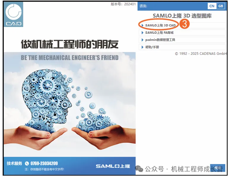 3.在软件开始界面点击“SAMLO上隆3D CAD”;