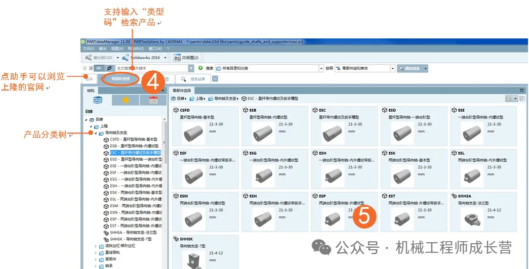 4. 点击“零部件选择”进入零件列表页