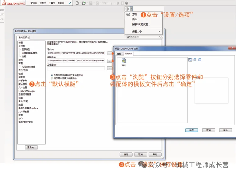 2 在solidworks设置默认模版,否则可能会导致生成模型错误,步骤如下: