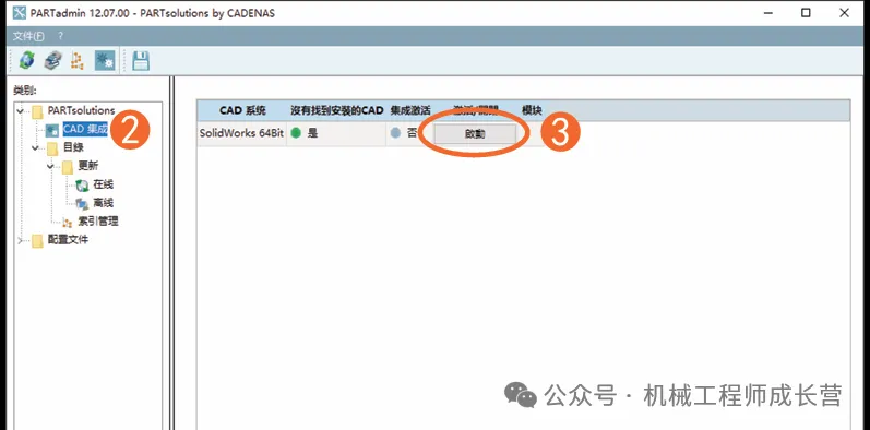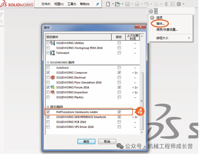 4. 在solidworks软件中进行设置。步骤为:设置/插件/PARTsolutions Solidworks Admin,两个项目均处于勾选状态;