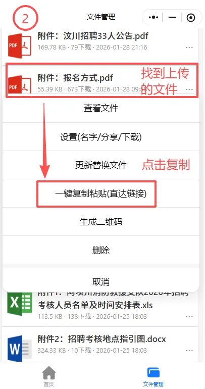 3. 上传成功后,一键复制文件链接,粘贴到公众号编辑器对应位置,系统会自动解析成小程序卡片,发布后读者点击即可预览、下载,手机、电脑双端都能流畅操作。