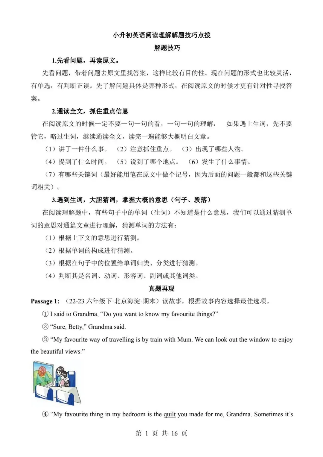 小升初英语阅读理解解题技巧点拨(电子版可打印附答案)