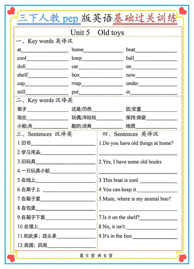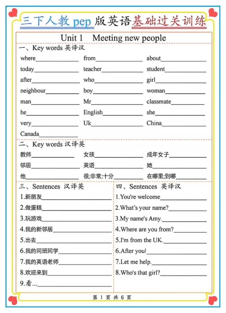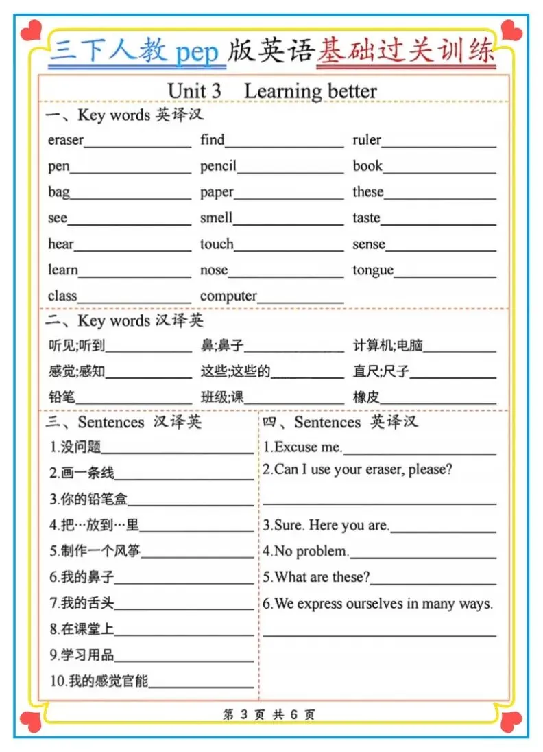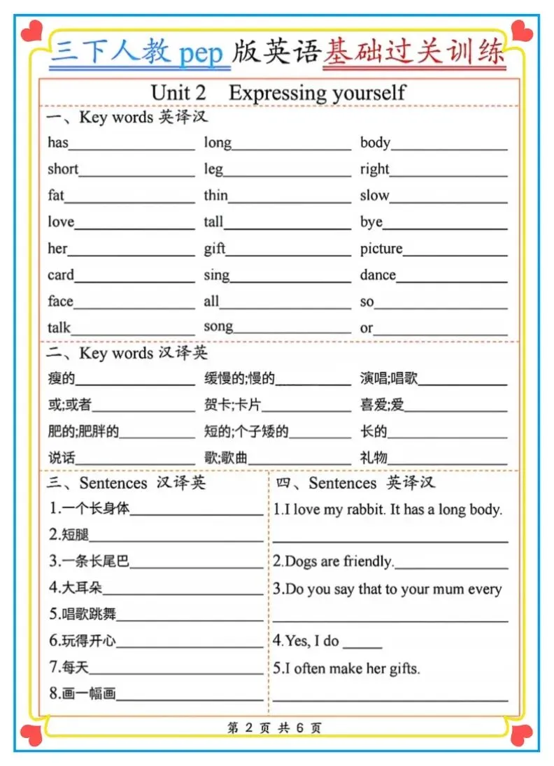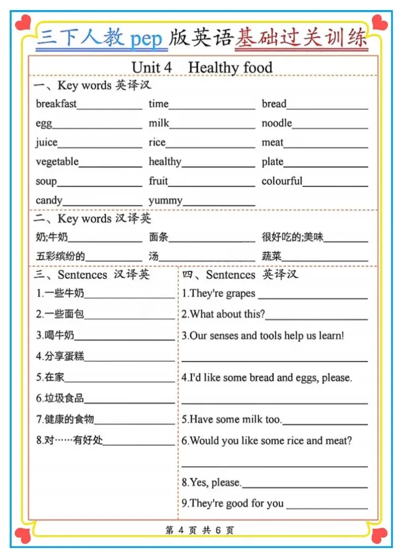 2026春新三年级下册人教PEP版英语《基础过关训练》(英译汉、汉译英)含答案 附链接可打印