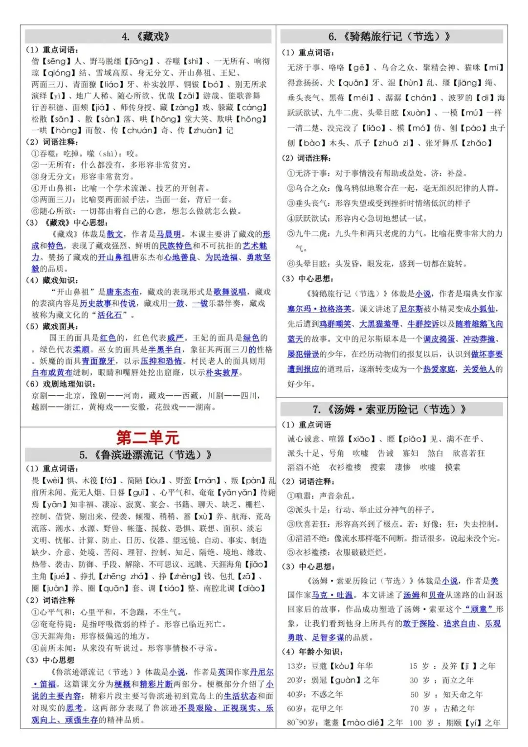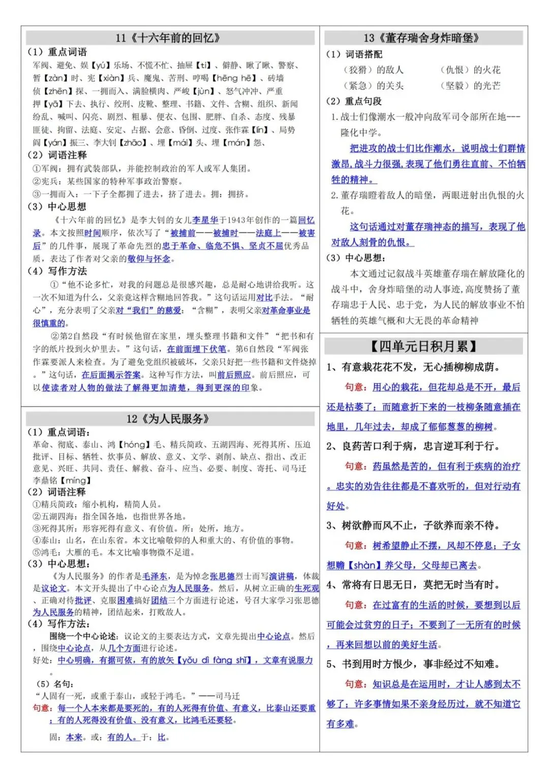 26春部编版六年级下册语文《每课重点知识贴》课课贴,高清电子版可打印