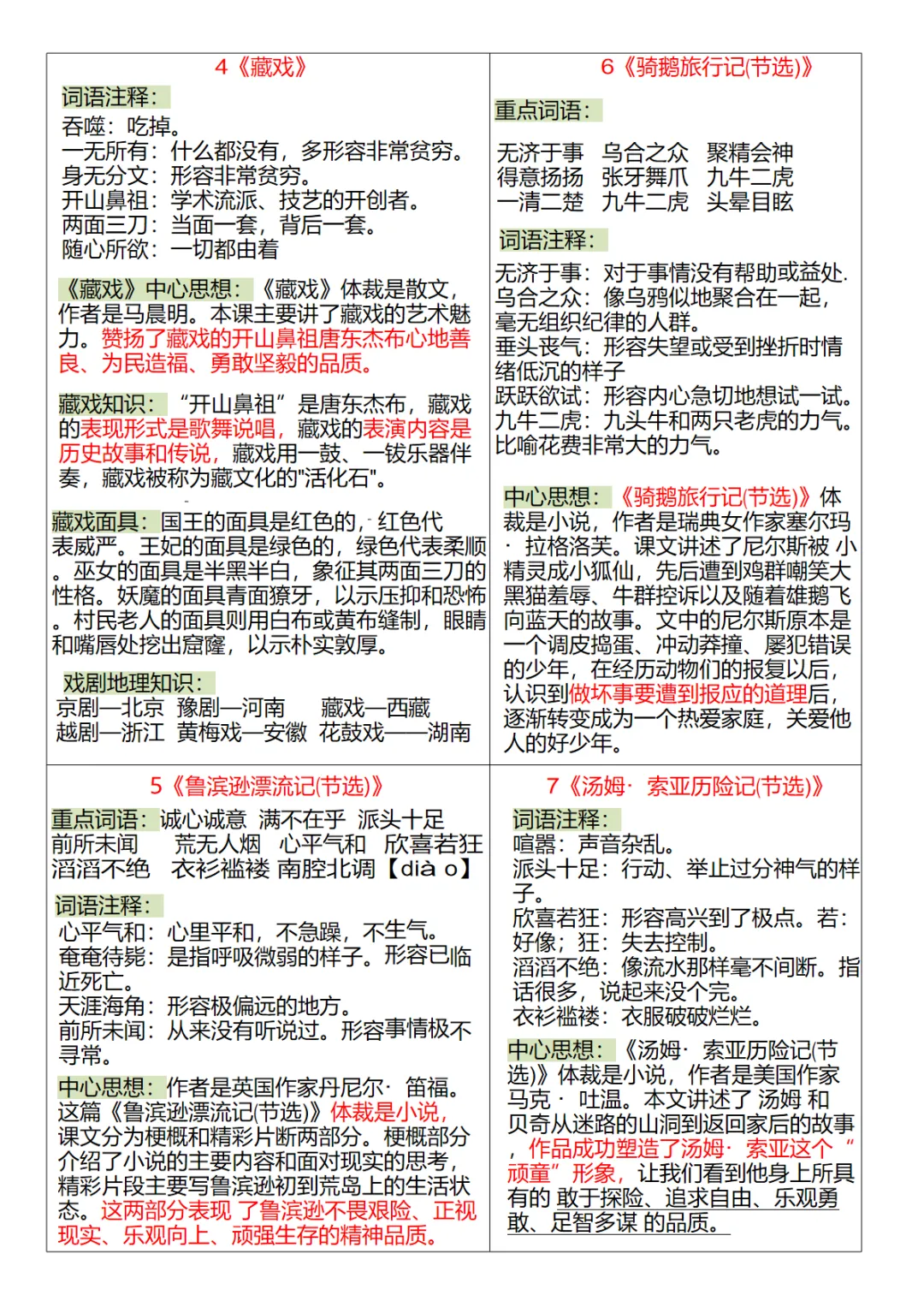 【免费下载】六年级(下)语文 全册课课贴,PDF电子版,共6页,可打印