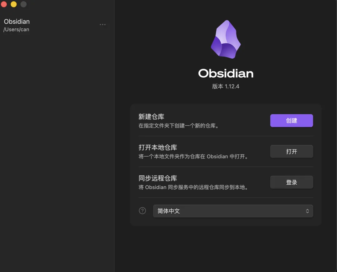 大家可以先打开 Obsidian,建立一个仓库,其实就是选择一下你准备把自己的笔记放在哪个文件夹。