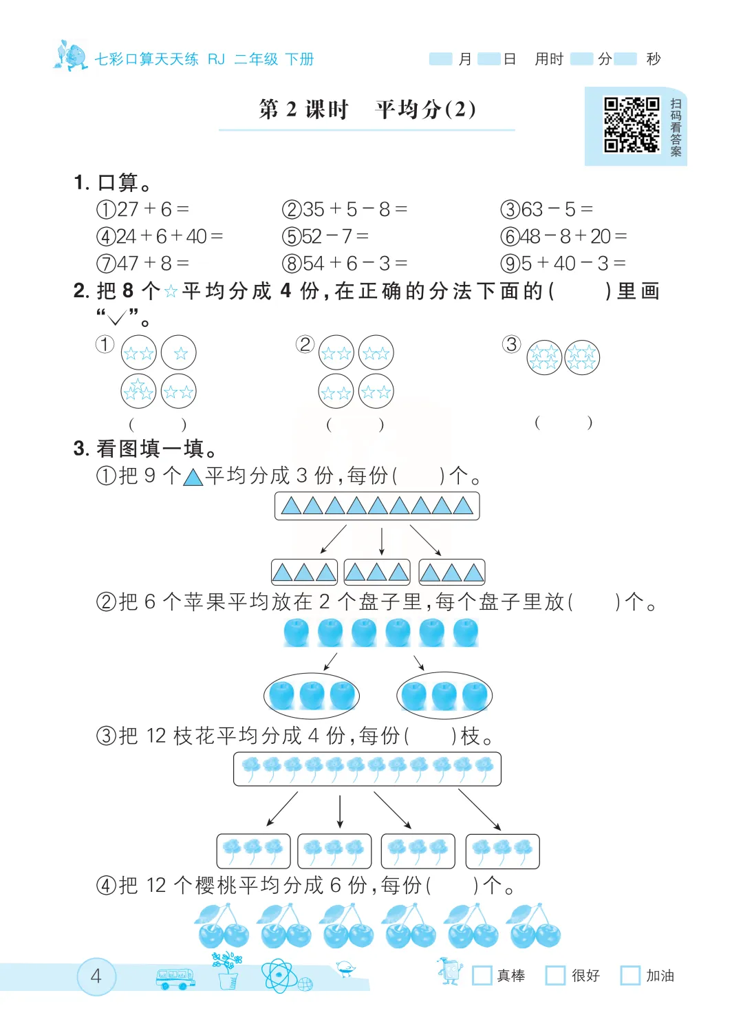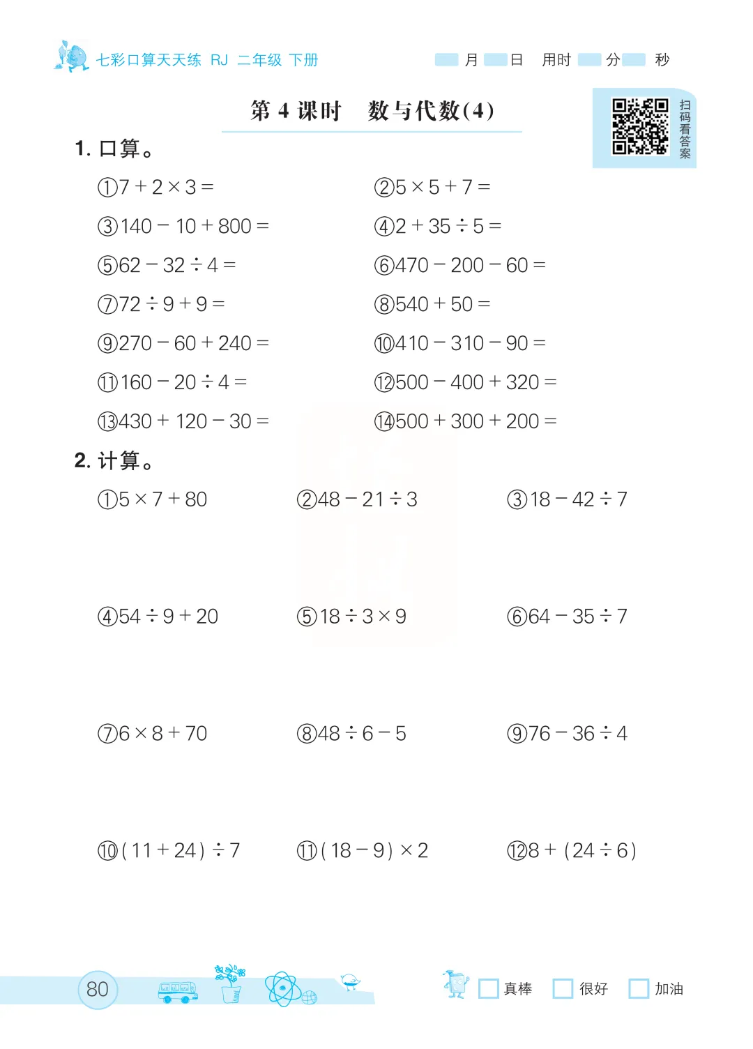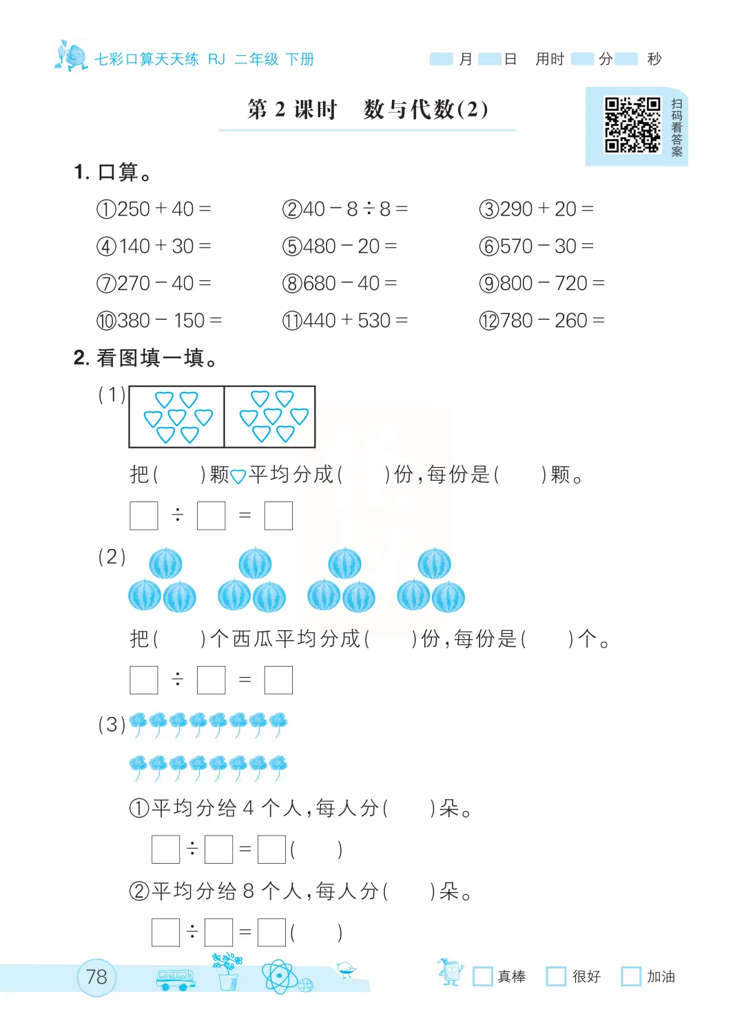 《七彩口算天天练》二年级下册数学, 电子版可打印