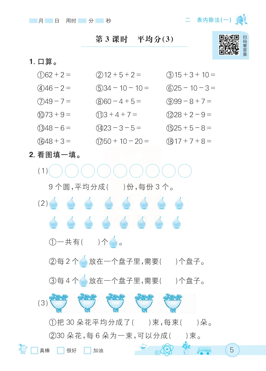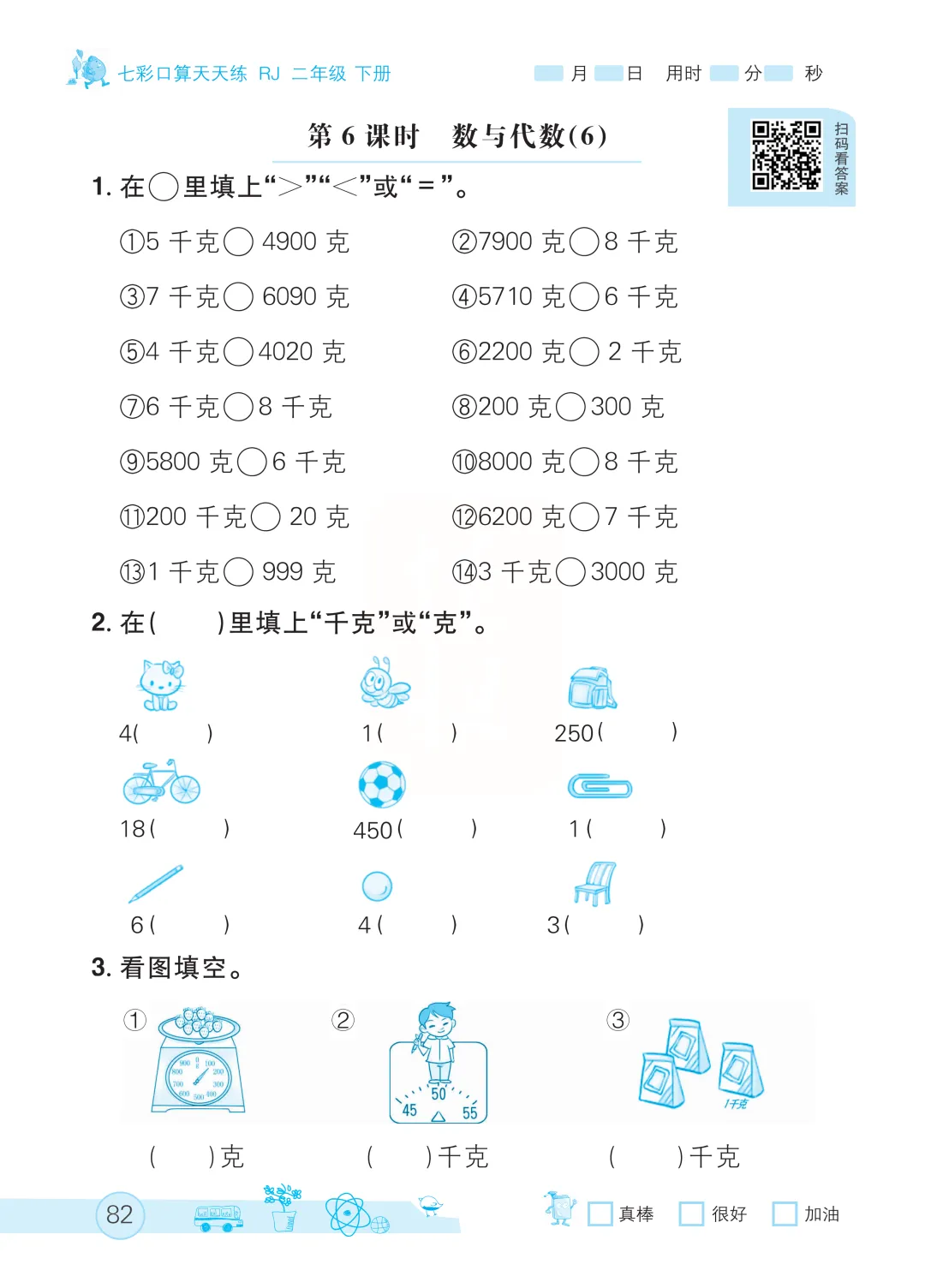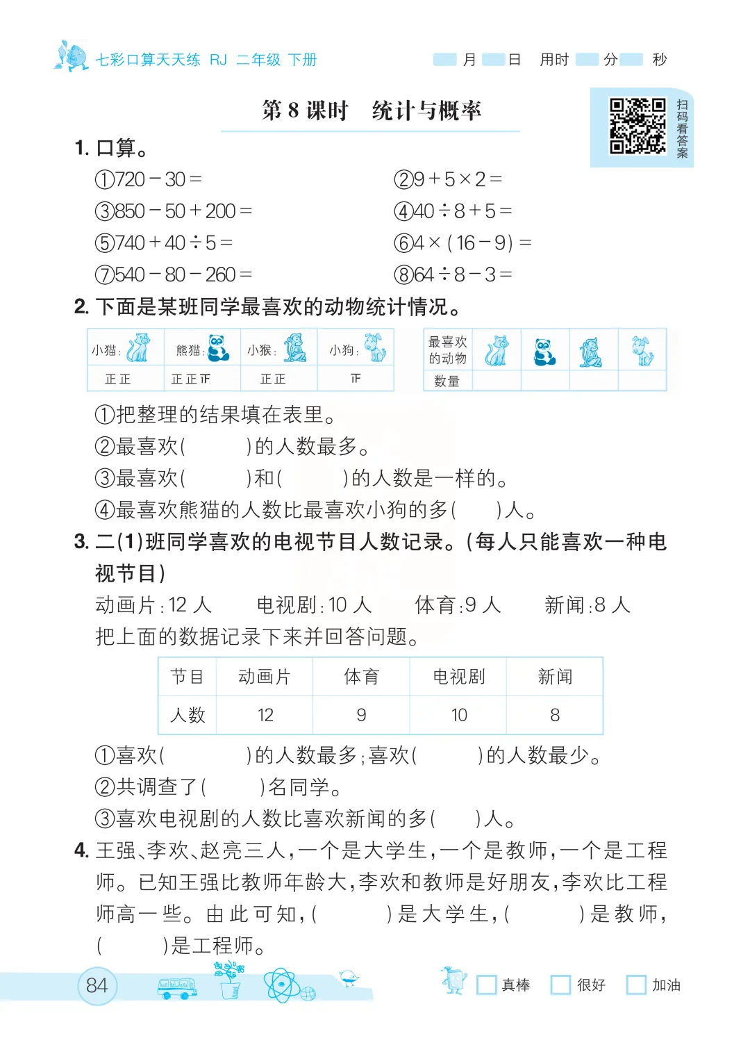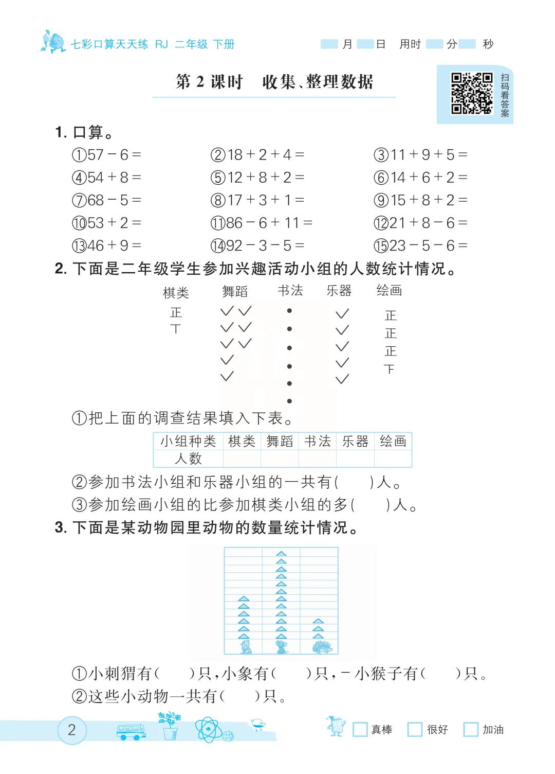 《七彩口算天天练》二年级下册数学, 电子版可打印