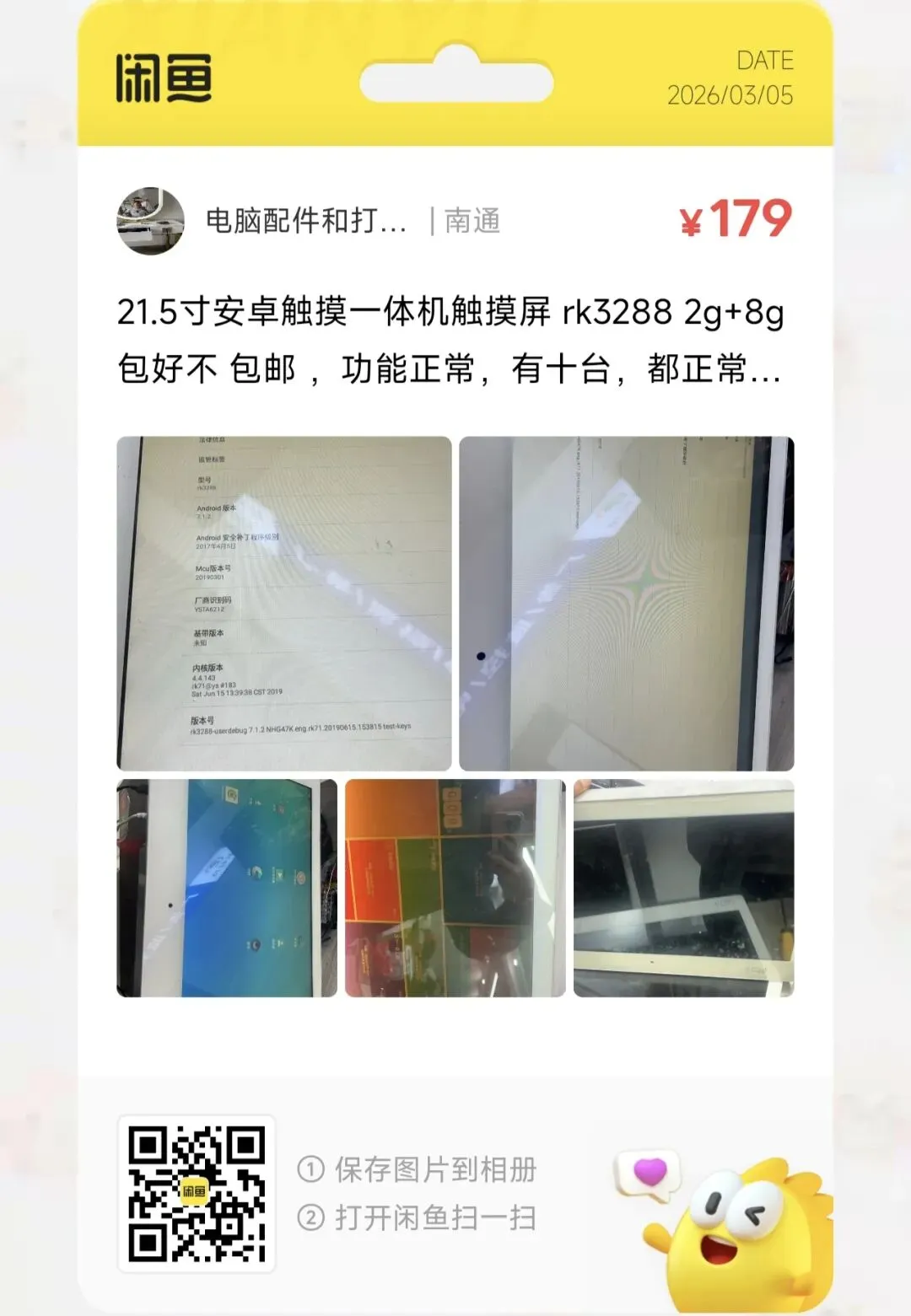 粉丝爆料分享了一款价格179元的21.5寸安卓触摸一体机触摸屏 rk3288 2g+8g 包好不 包邮 ,功能正常,有十台