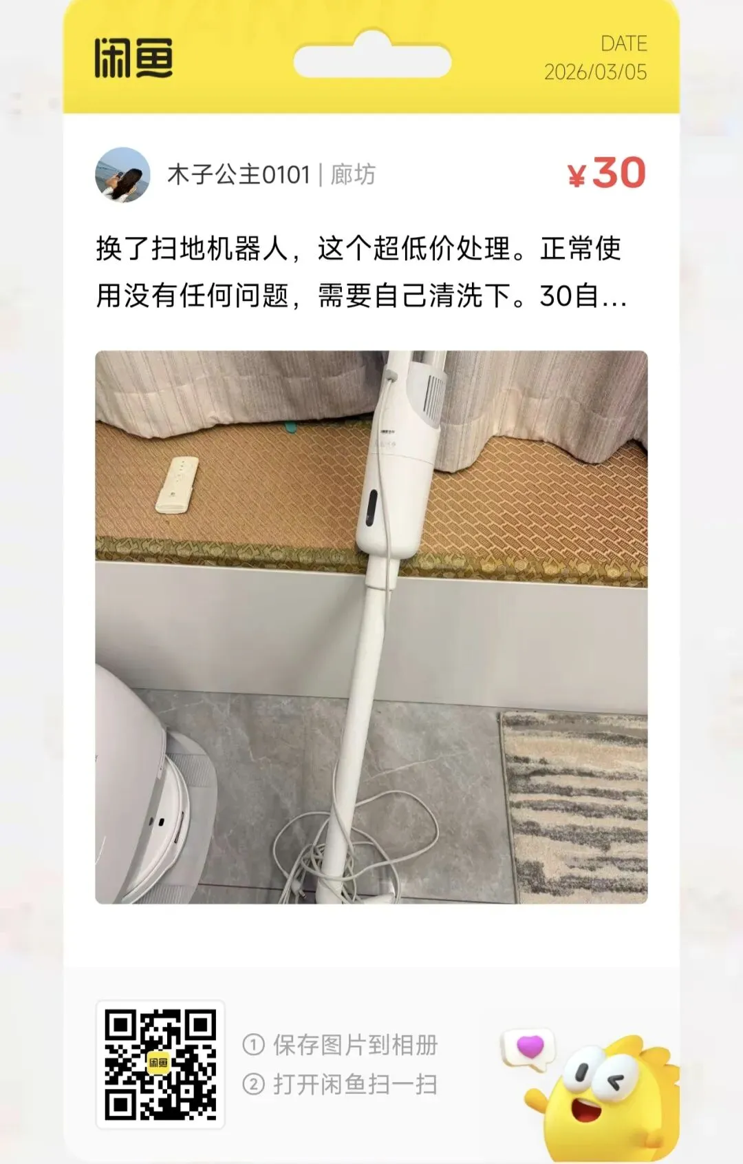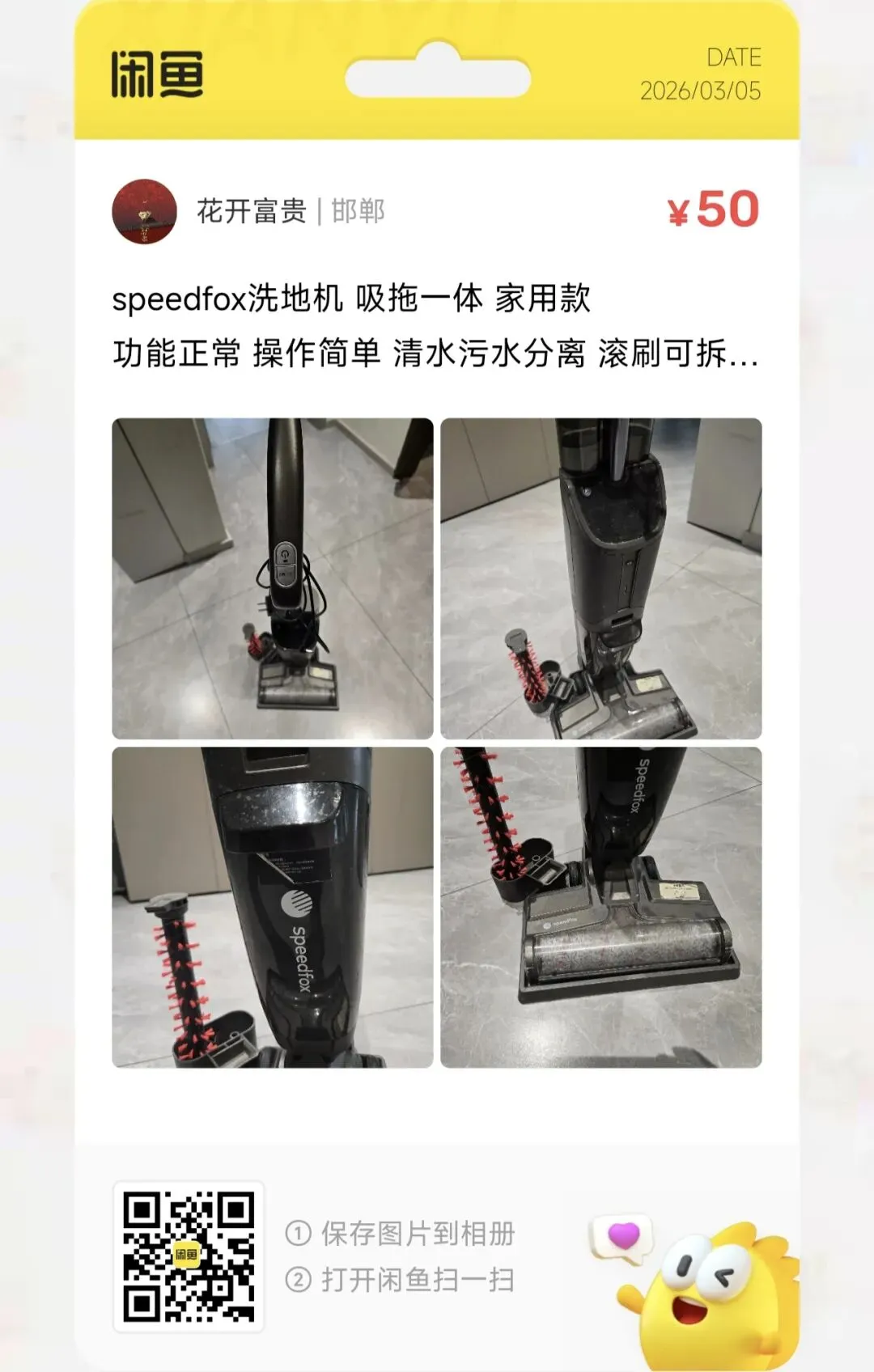 粉丝爆料分享了一台价格50元的speedfox洗地机 吸拖一体 家用款