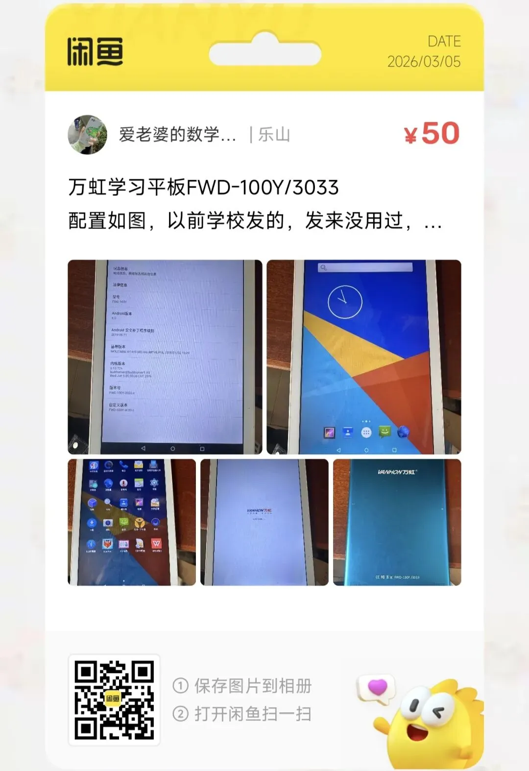 粉丝爆料分享了一台价格50元的万虹学习平板FWD-100Y/3033