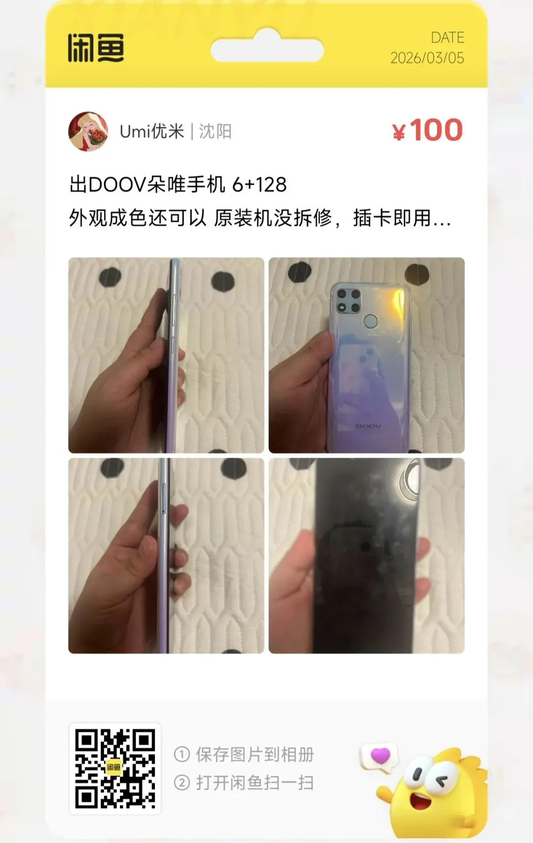 粉丝爆料分享了一台价格100元的DOOV朵唯手机 6+128