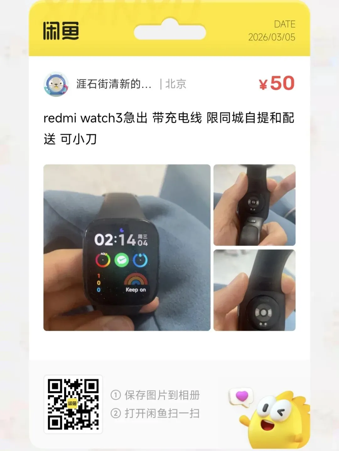 粉丝爆料分享了一台价格50元的redmi watch3急出 带充电线