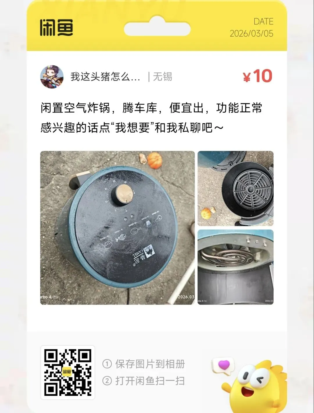 粉丝爆料分享了一台价格10元的空气炸锅