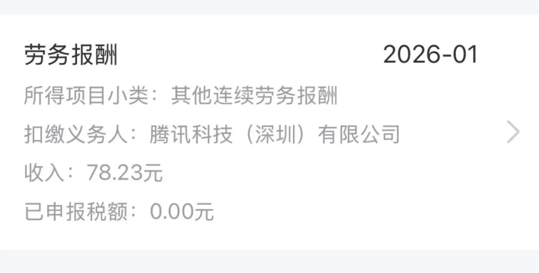 个税APP突然多出一笔“腾讯大厂”收入,钱却没到账,这是怎么回事? 最近申报退税,顺手查了下去年的个税收入明细,结果发现里面多了一笔来自某大厂的申报记录。可翻遍了公众号、银行卡,愣是没找到对应的收入。这笔钱哪儿来的?税倒是报了,钱呢?有没有人也遇到过这种情况?一起聊聊怎么回事。
