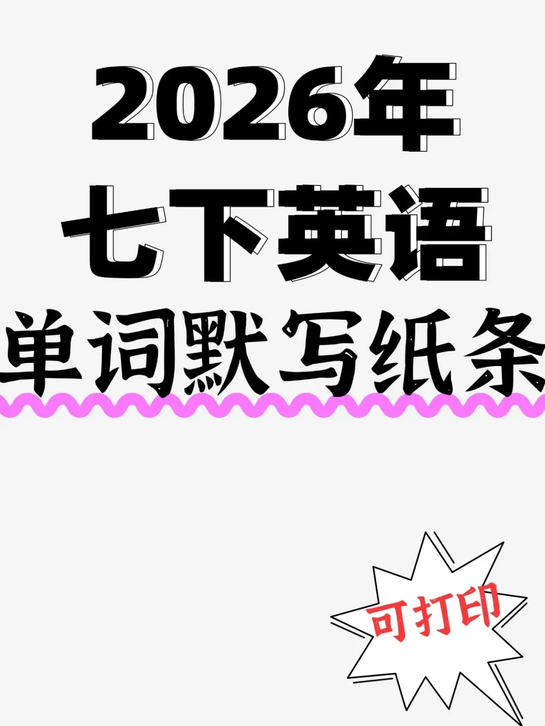 大家好,今天老师整理了:2026版七年级下册英语重点单词默写小纸条,可打印电子版!