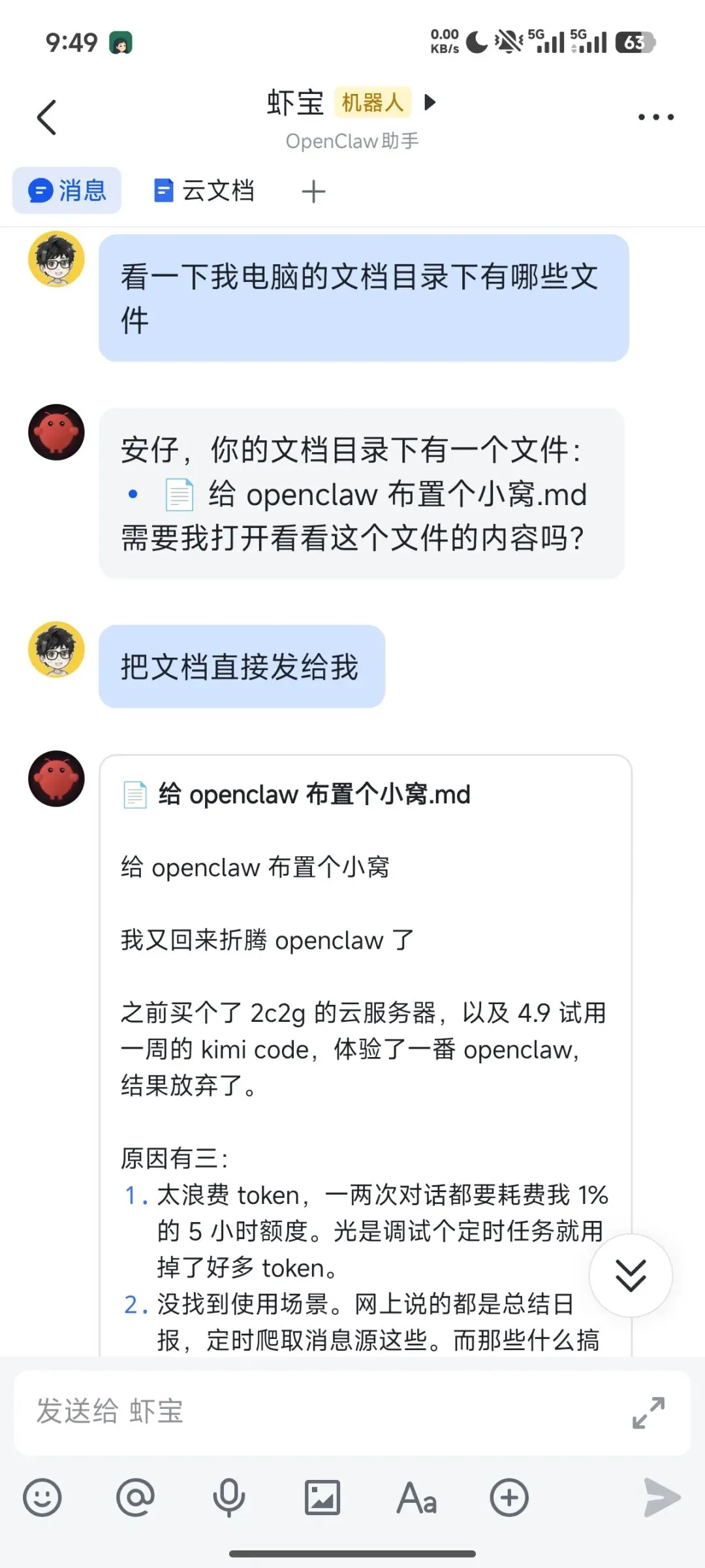 我直接让虾宝去指定路径下,把那个 md 文件给我找到,然后把全文发给我,搞定!