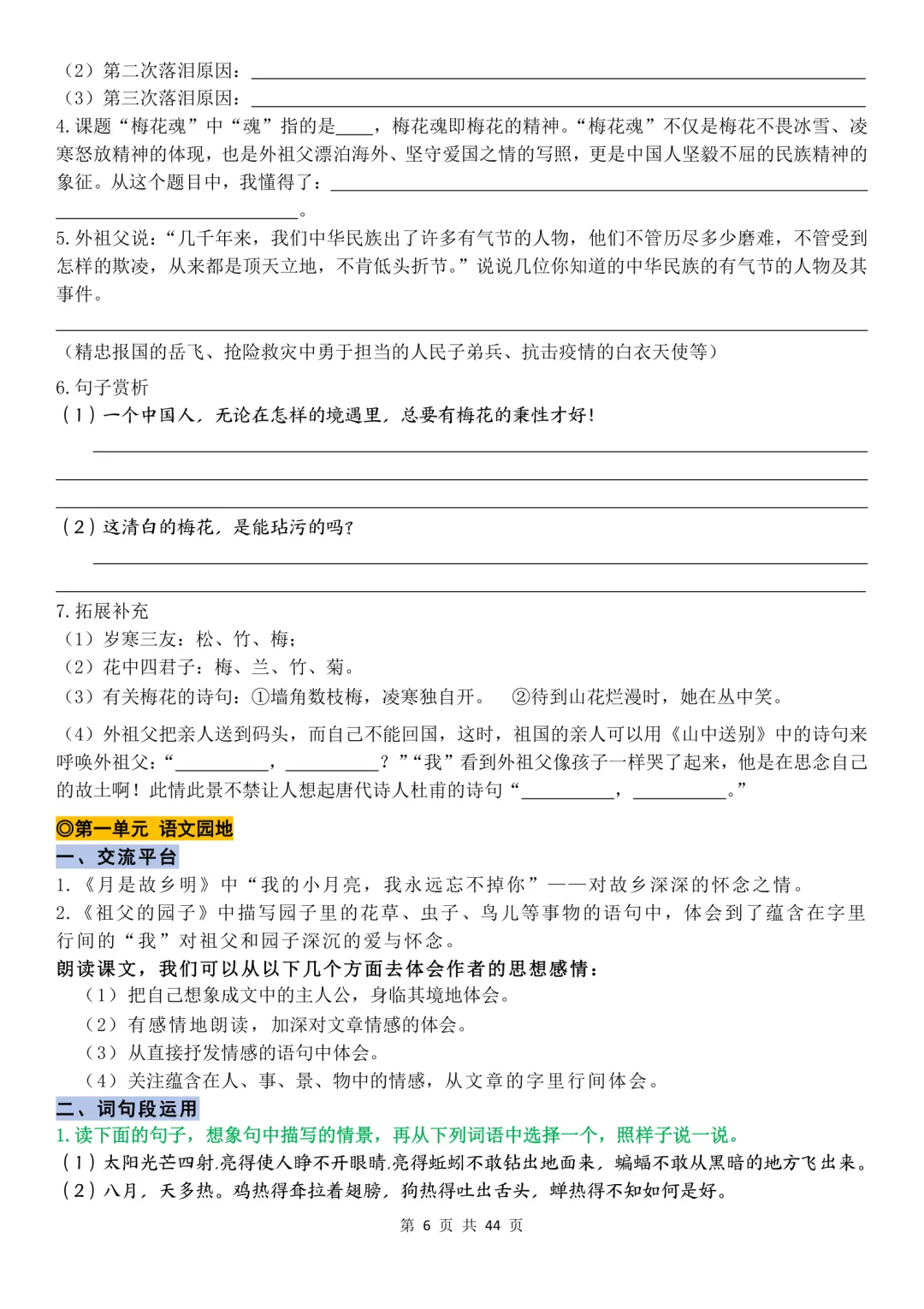 【2026春】人教部编版五年级下册语文《全册课文重点知识点汇总》含答案,高清可打印