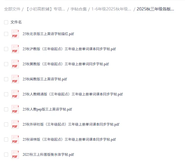 ✅ 2025秋新三年级各版本英语字帖