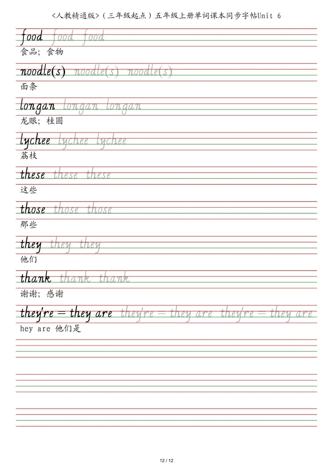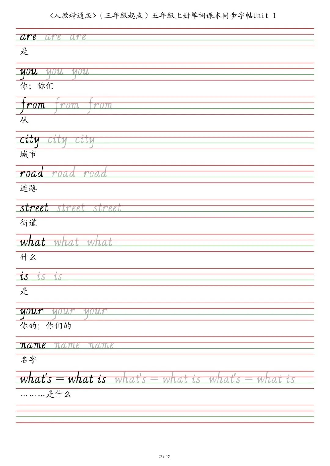 ✅ 2025秋新六年级各版本英语字帖
