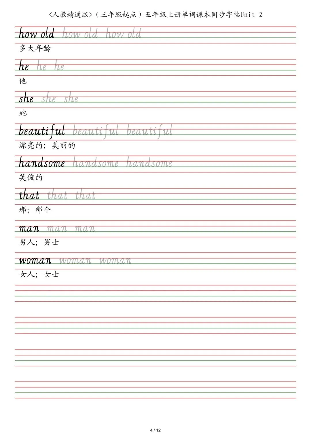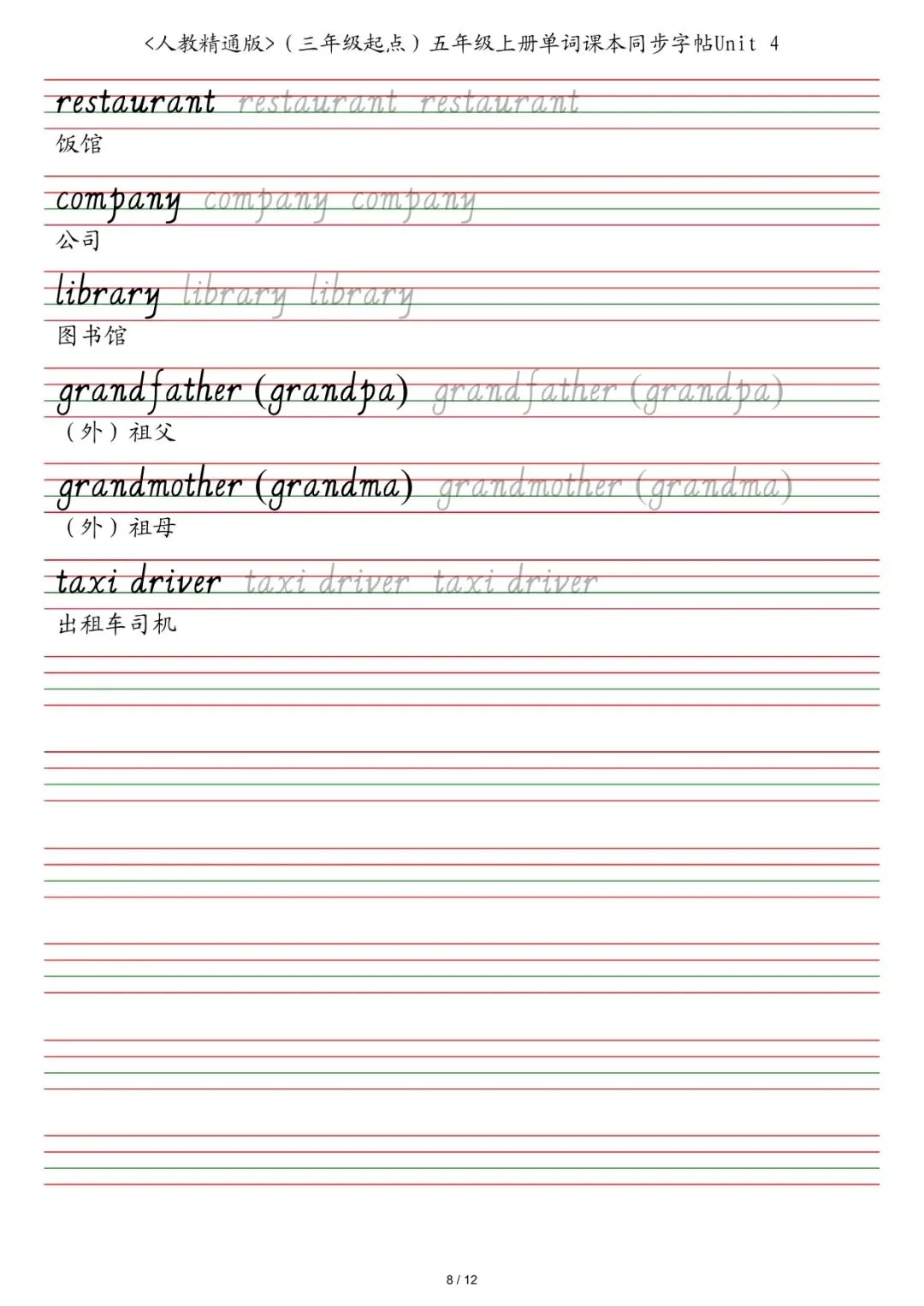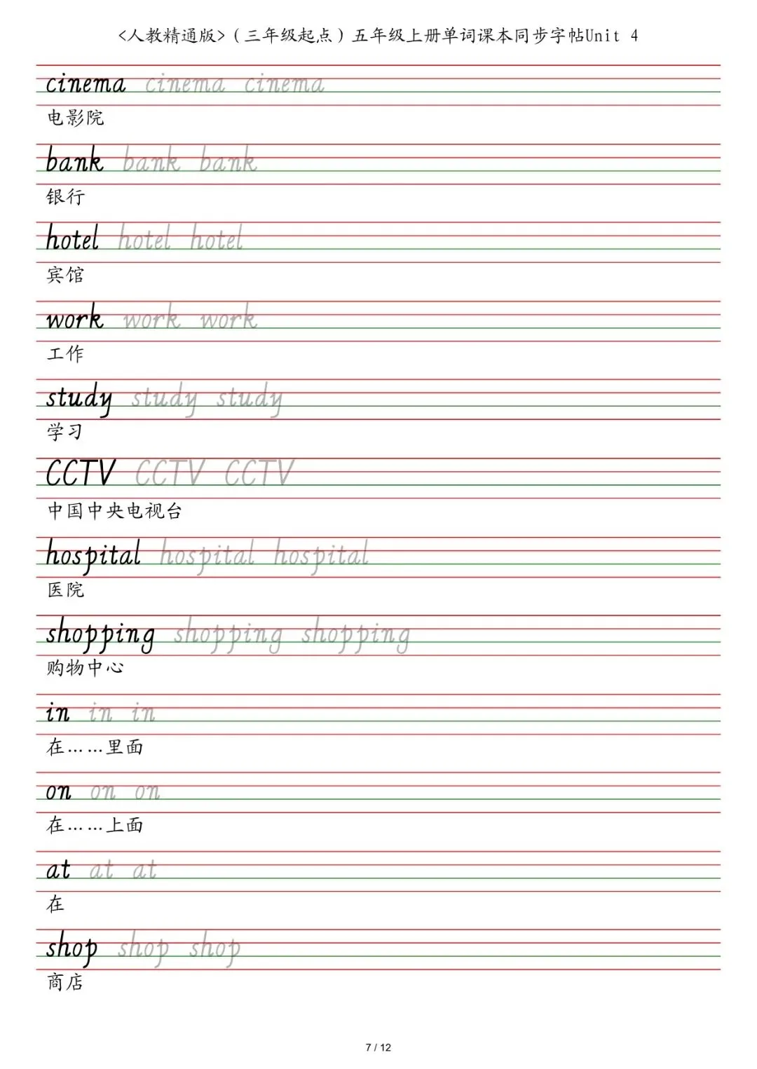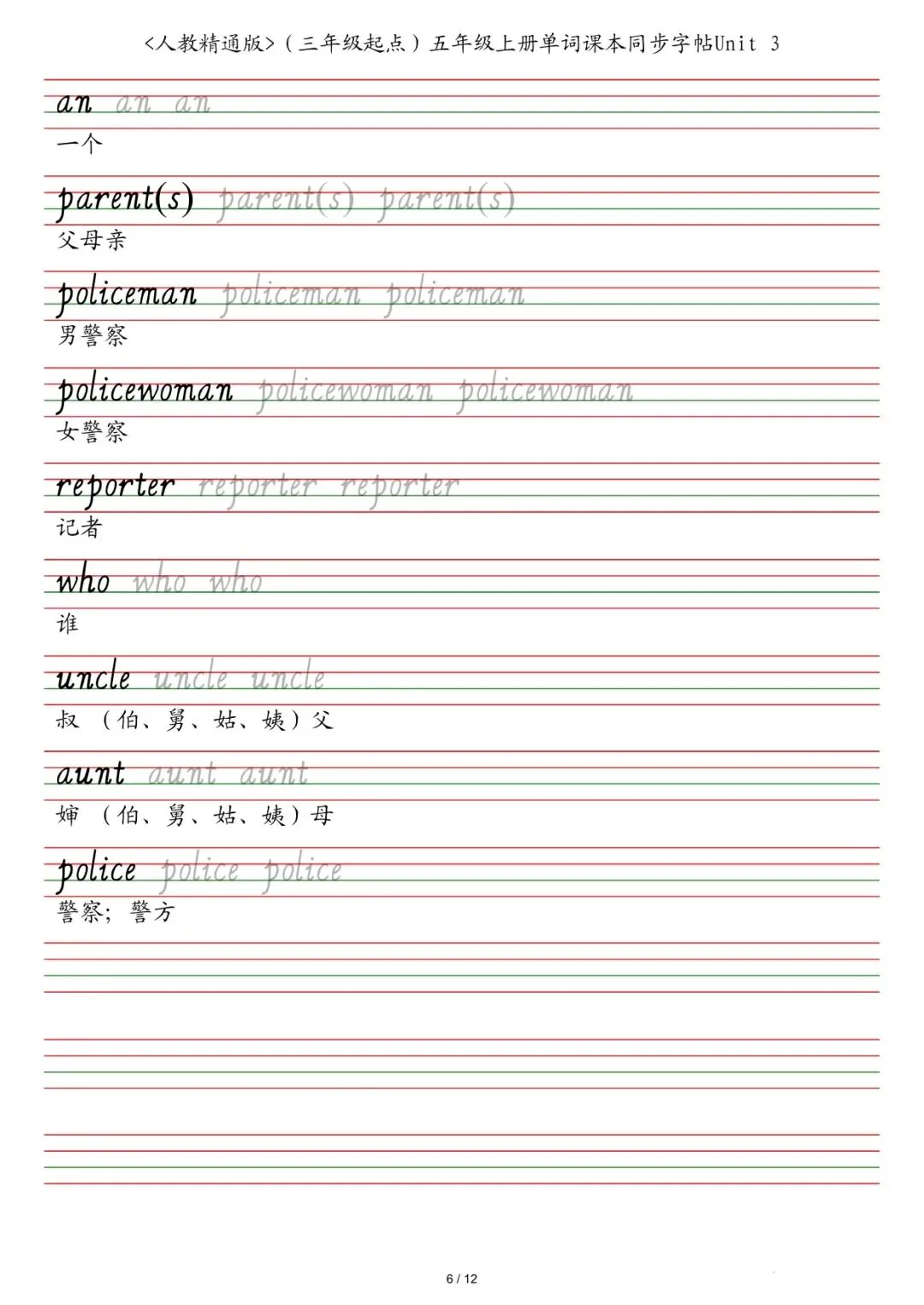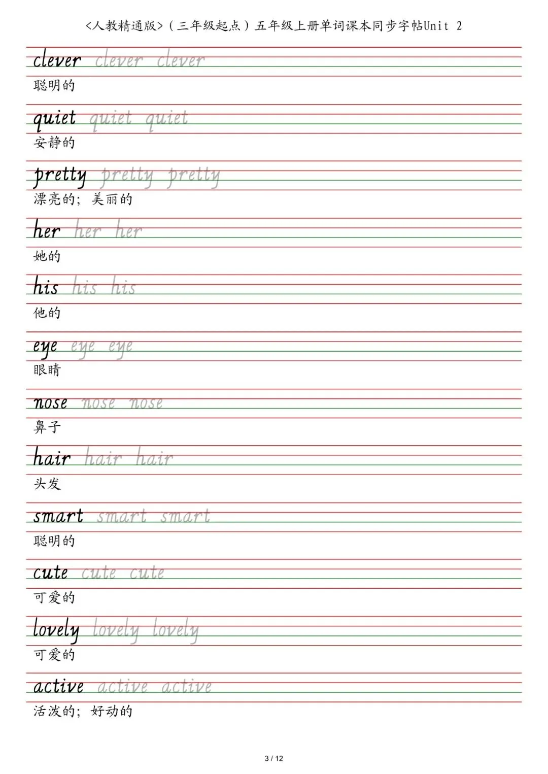 新三年级各版本英语字帖,电子版可下载打印
