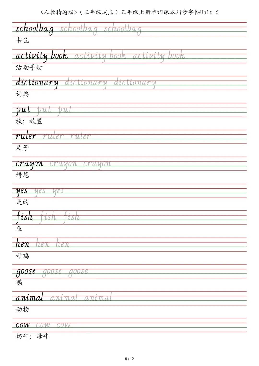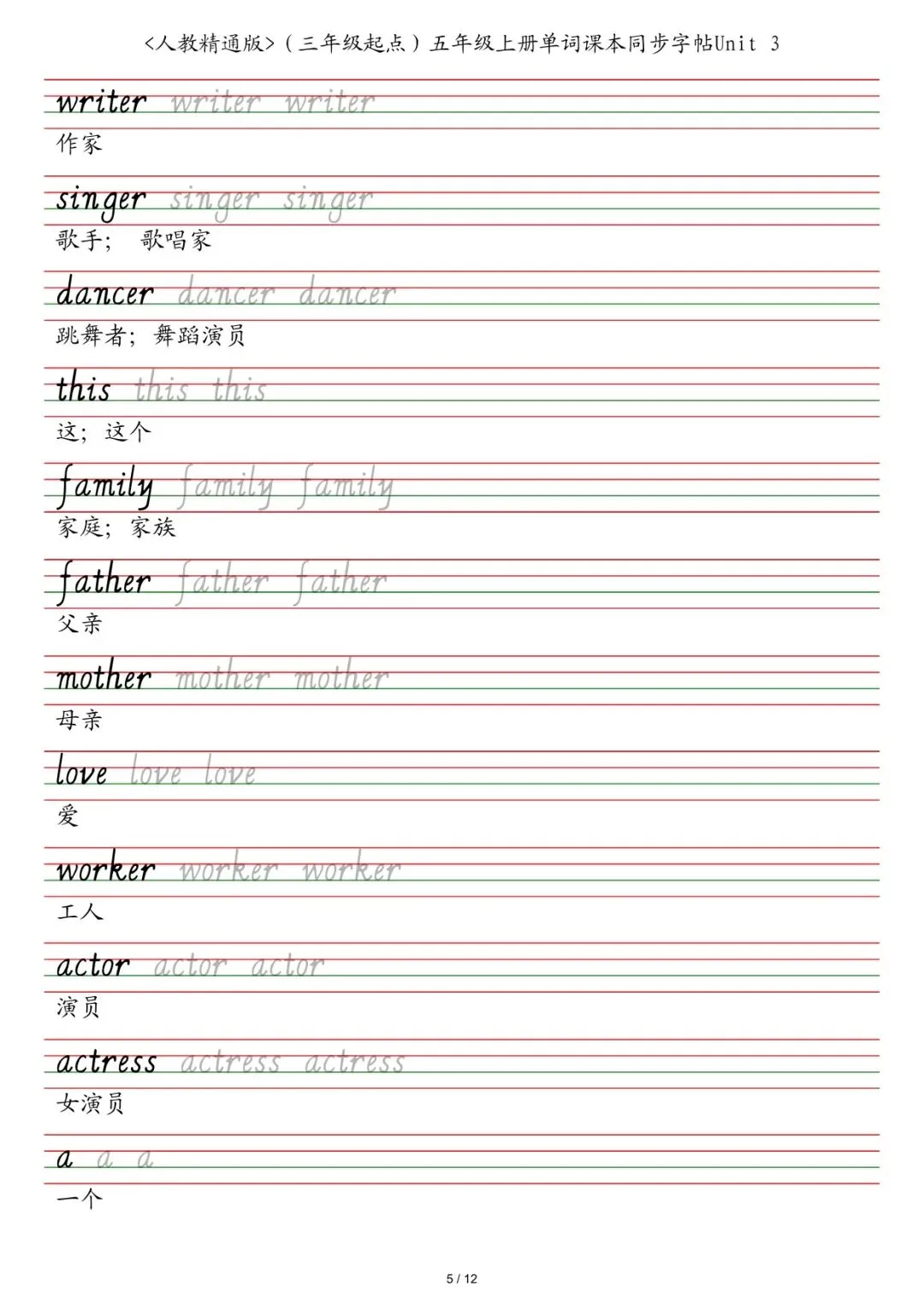 ✅ 2025秋新五年级各版本英语字帖