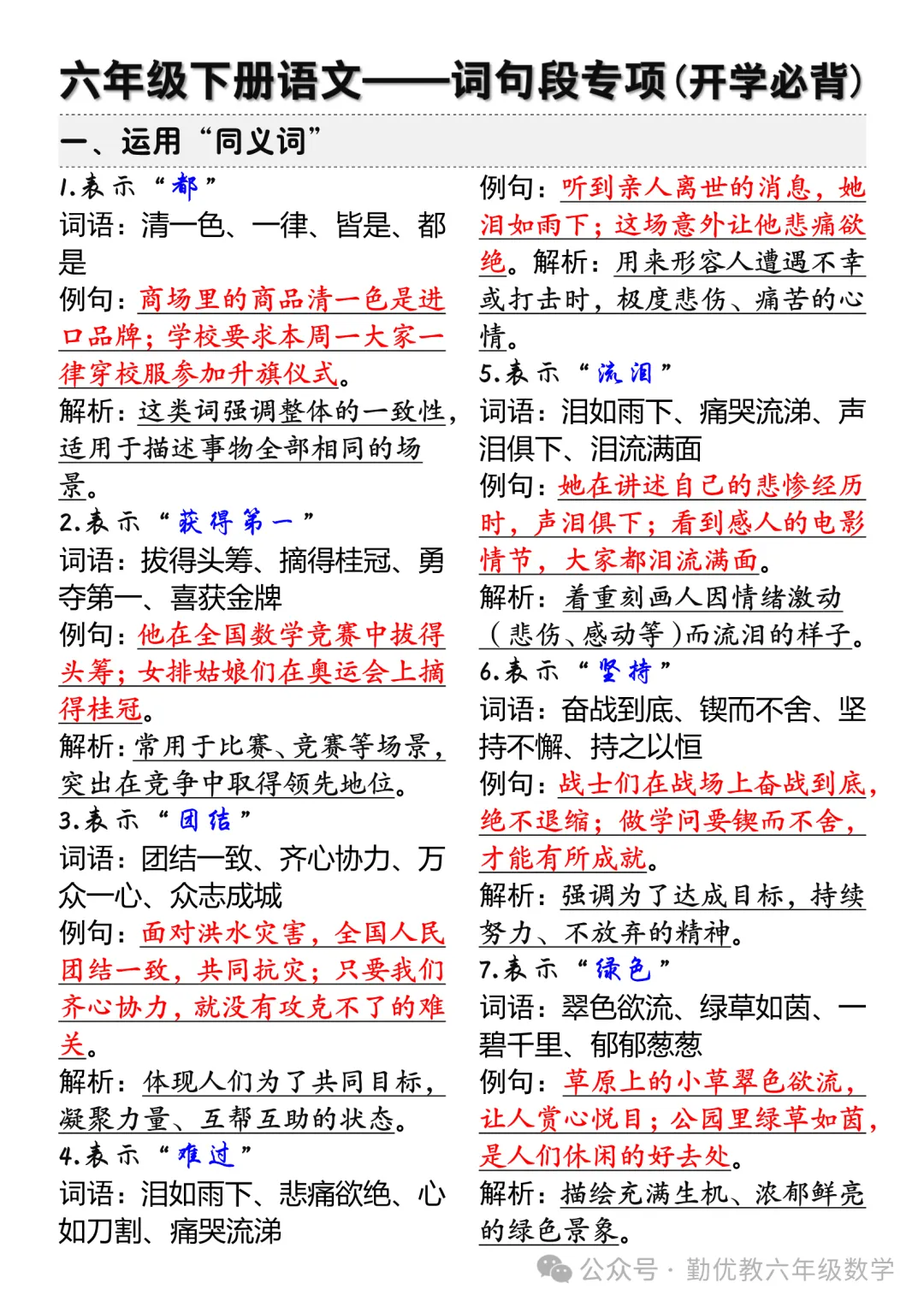 六年级下册语文《词句段专项》知识点梳理,电子版可打印~