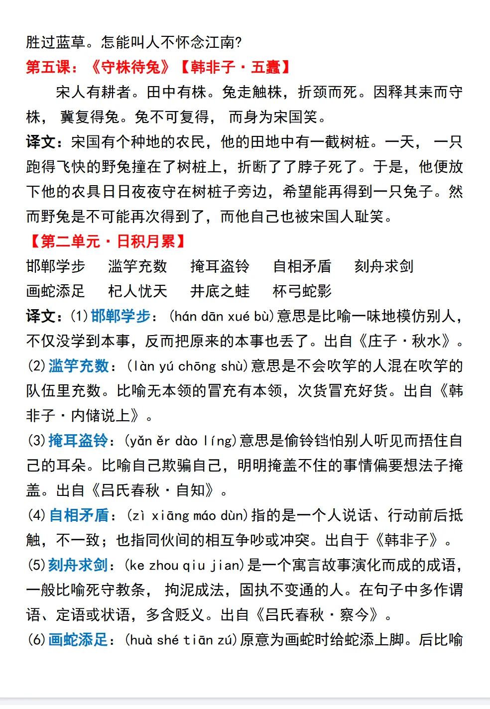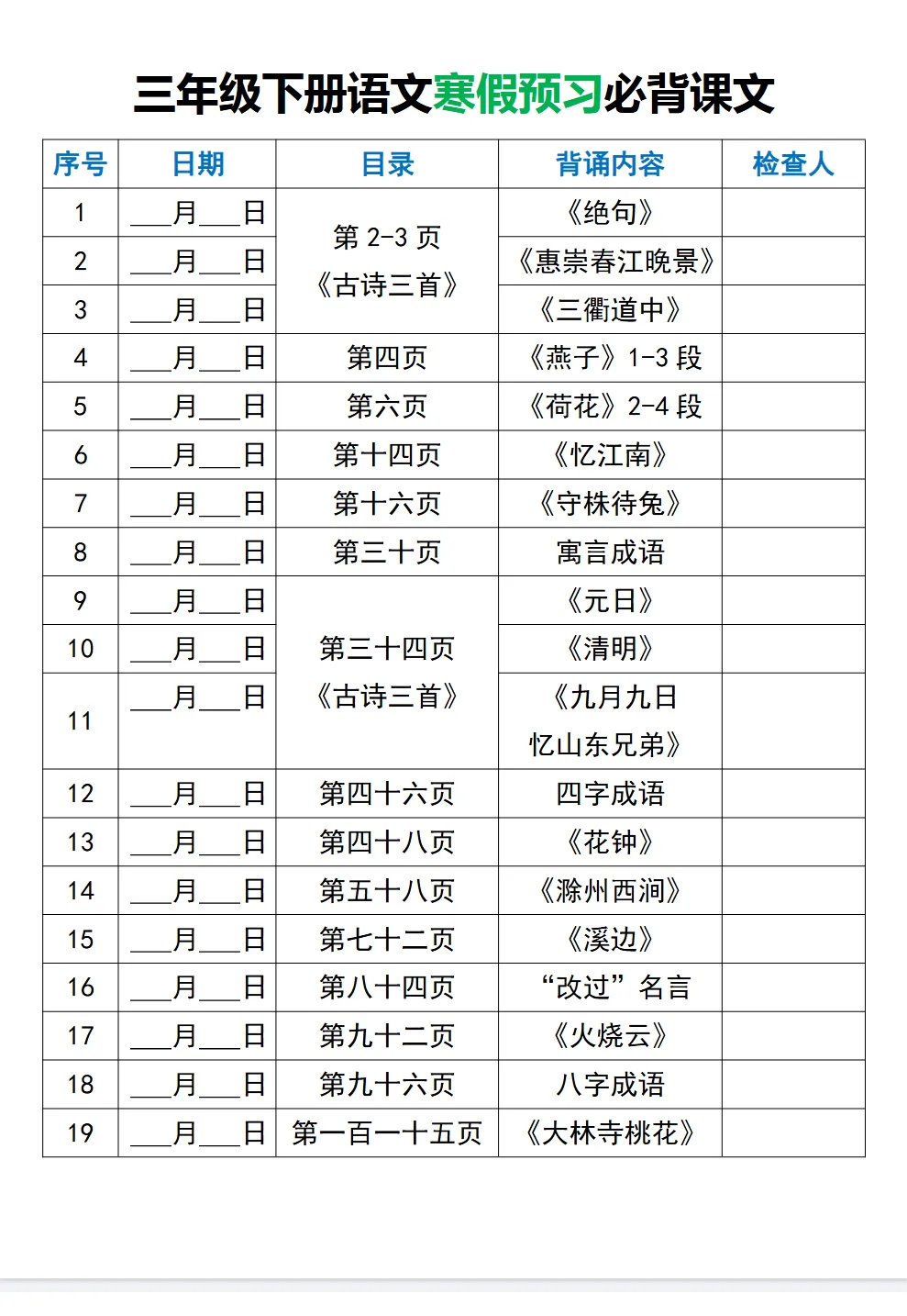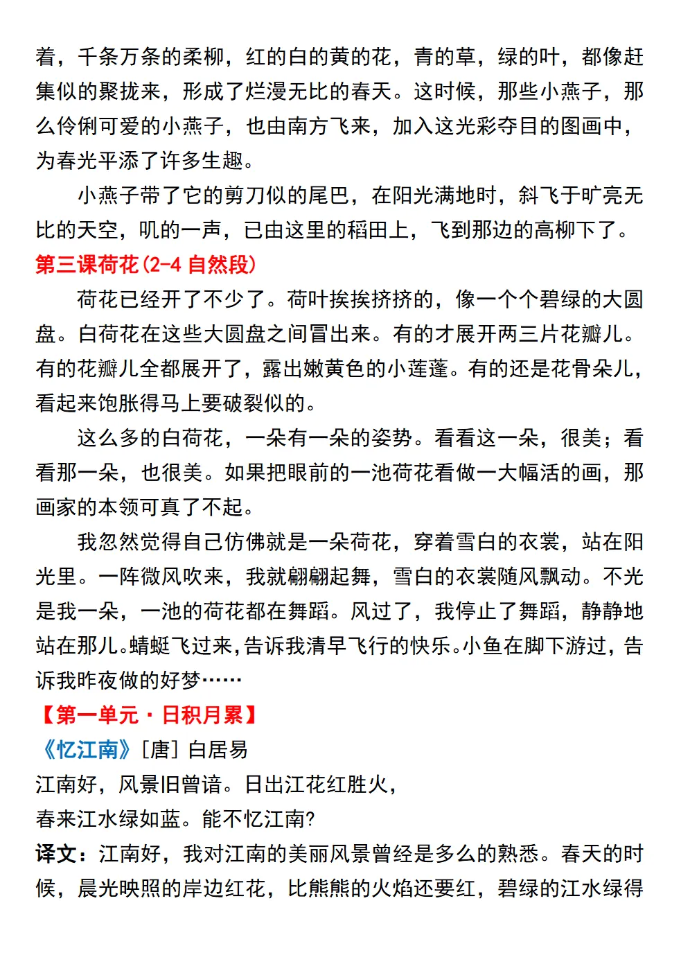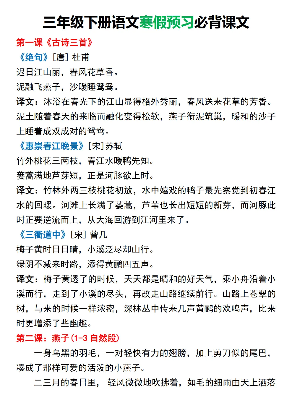 26春 人教部编版 三年级下册语文《课文必背内容汇总》(有古诗词、文言文、译文、注释、课内必背、日积月累) PDF,可打印