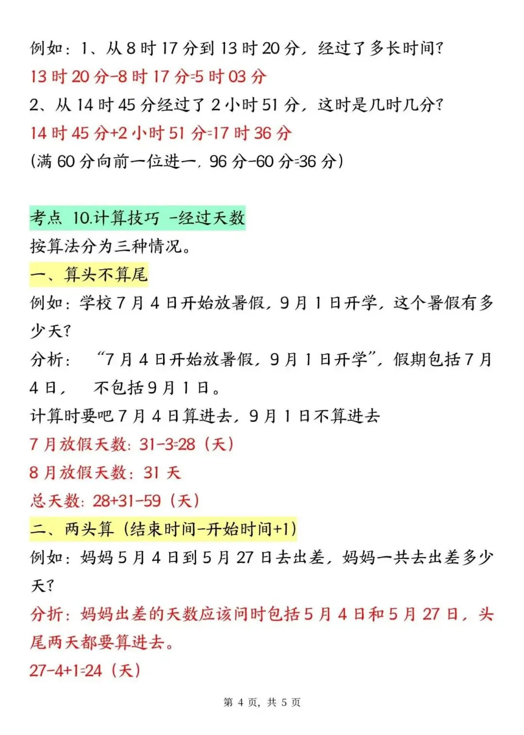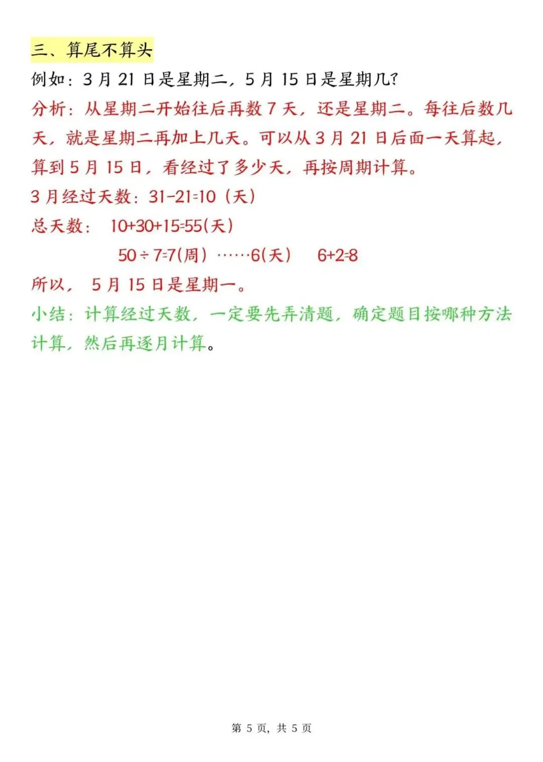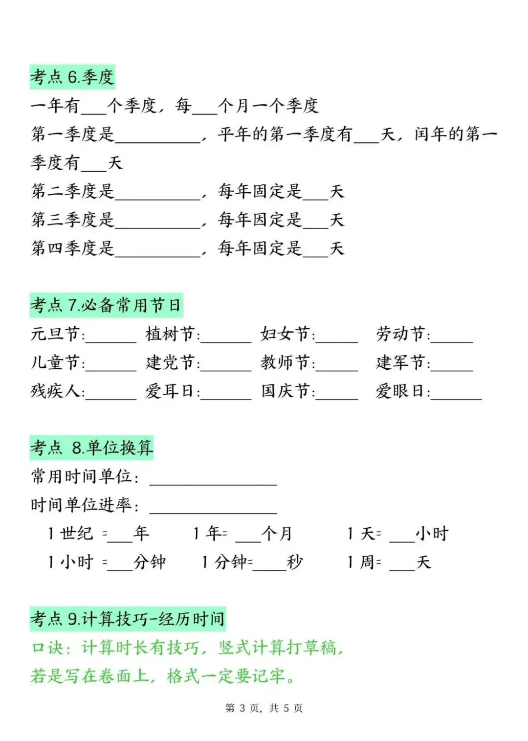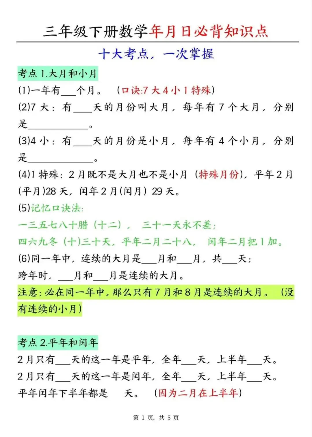三年级下册数学年月日必背知识点,电子版可下载打印
