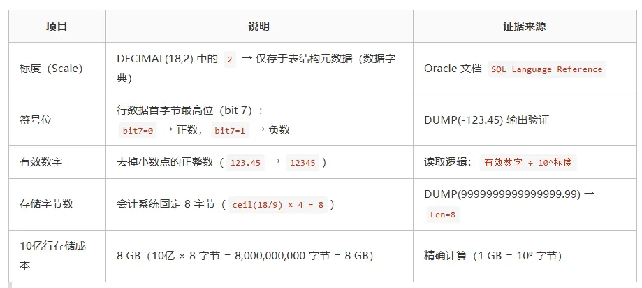 | DECIMAL(18,2) | 8 GB | 8字节/行(固定,会计系统典型值) |