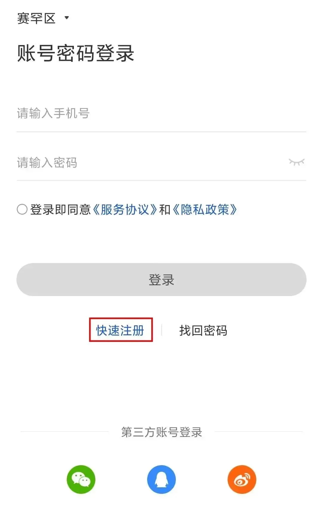 4、点击快速注册。
