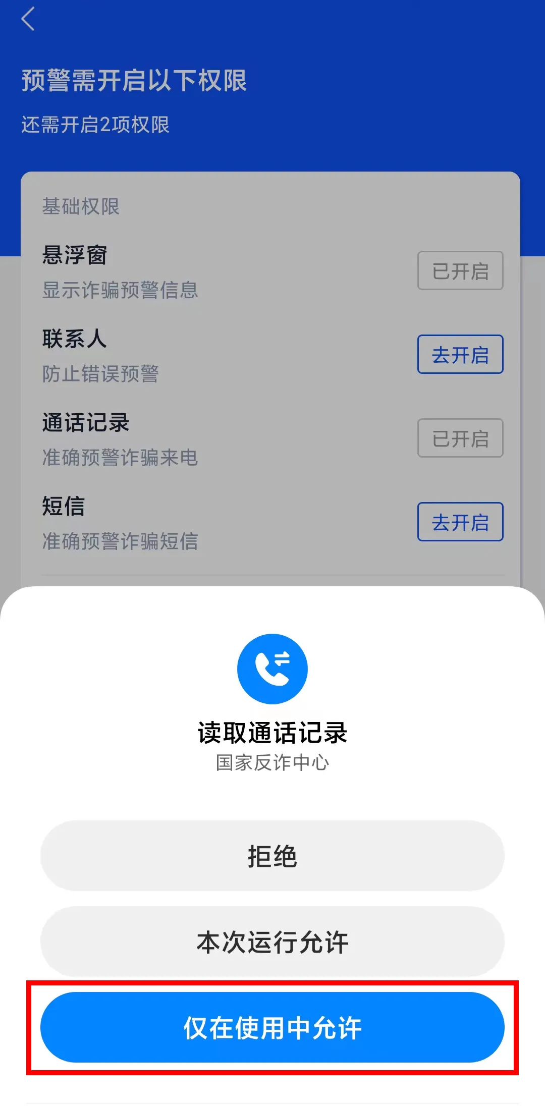 三、来电预警:反诈预警,全力防范