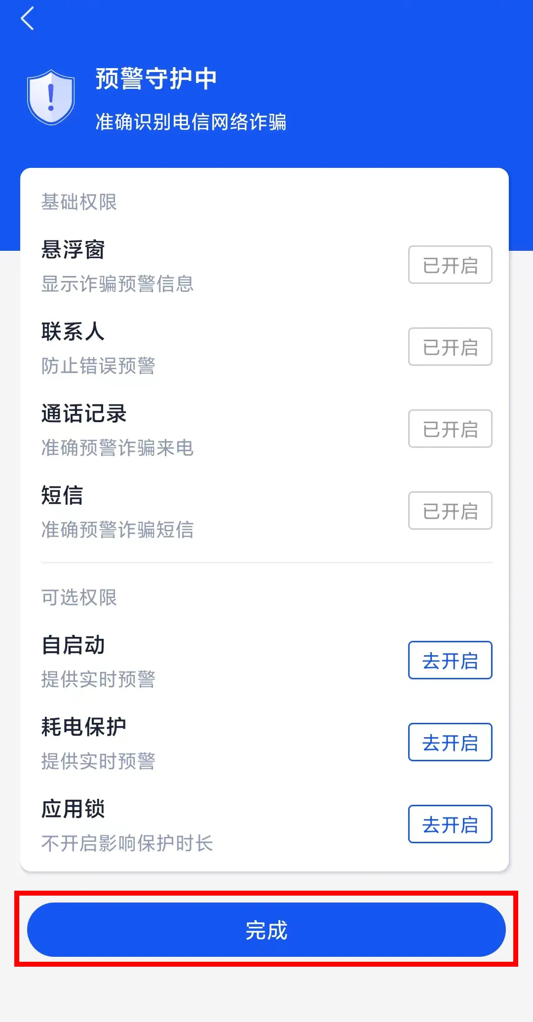 8、开启预警守护权限,完成预警。