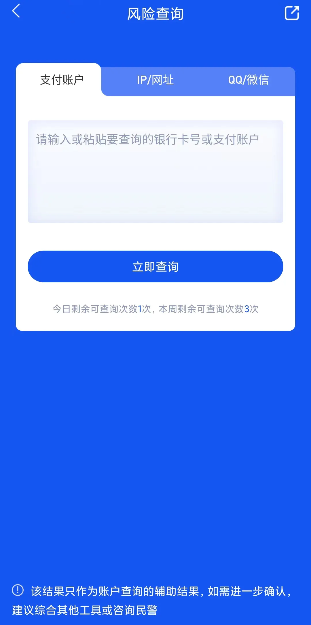 六、风险查询:可验证对方的各类账号是否涉诈