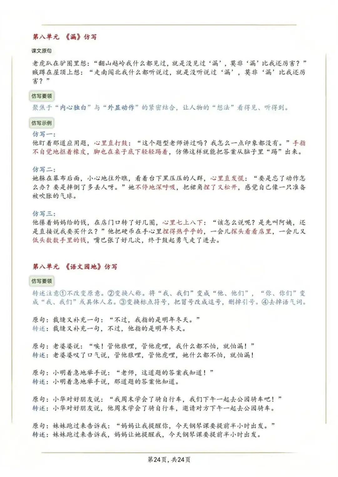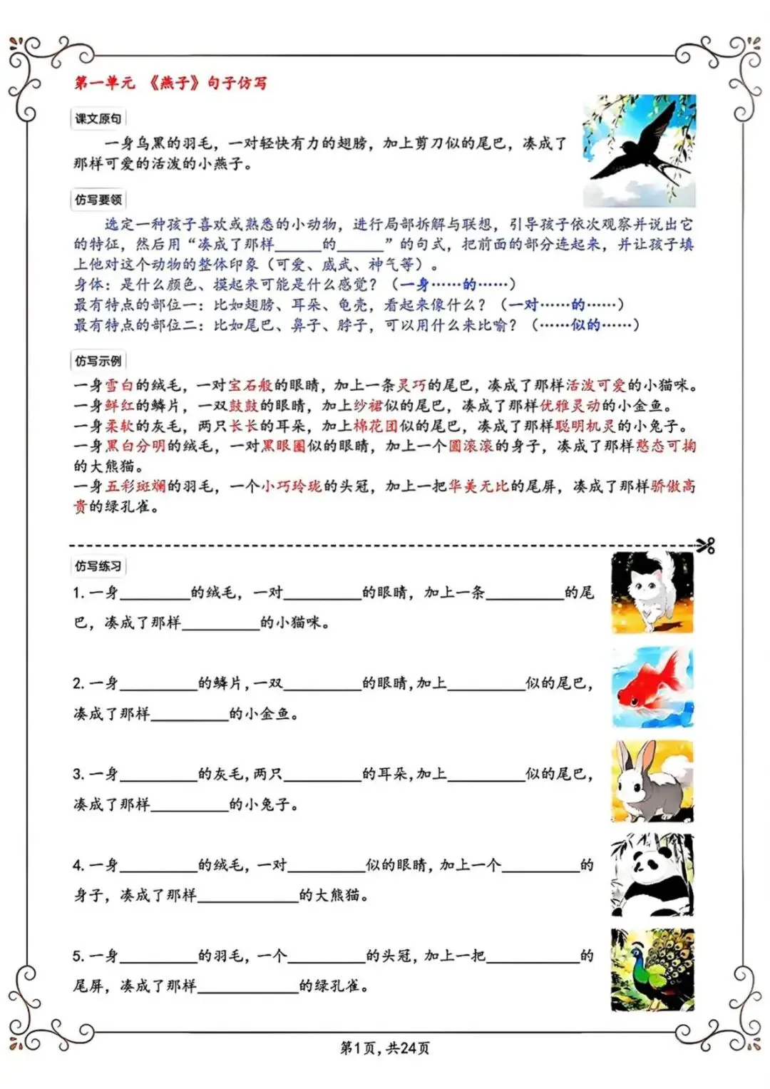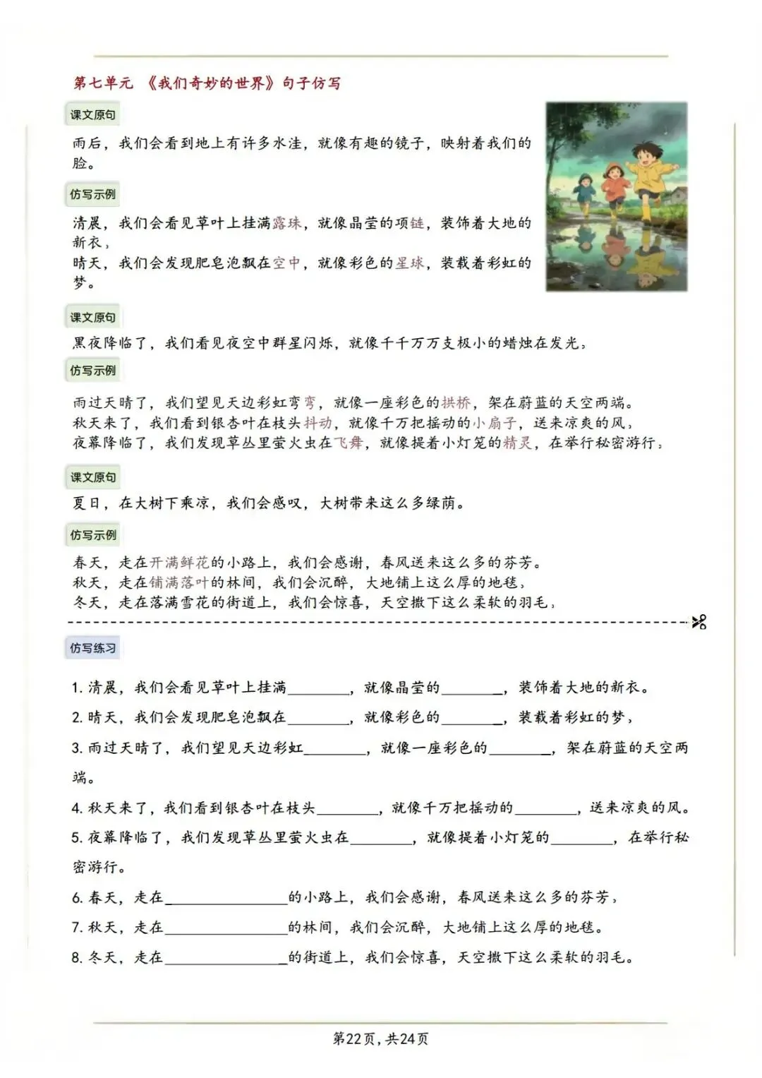【2026新教材】三下重点句子仿写汇总电子版(26页)
