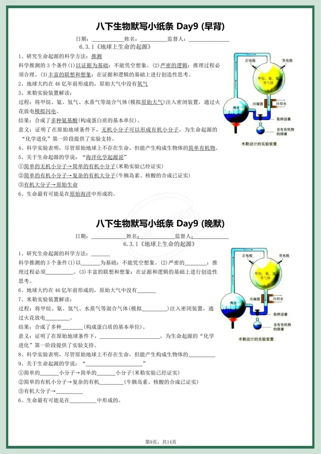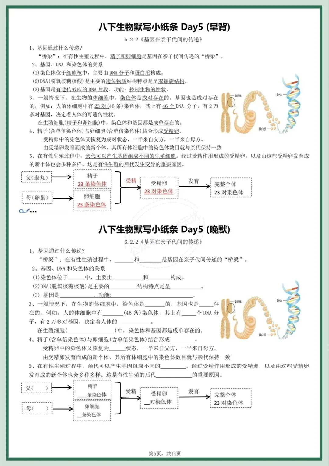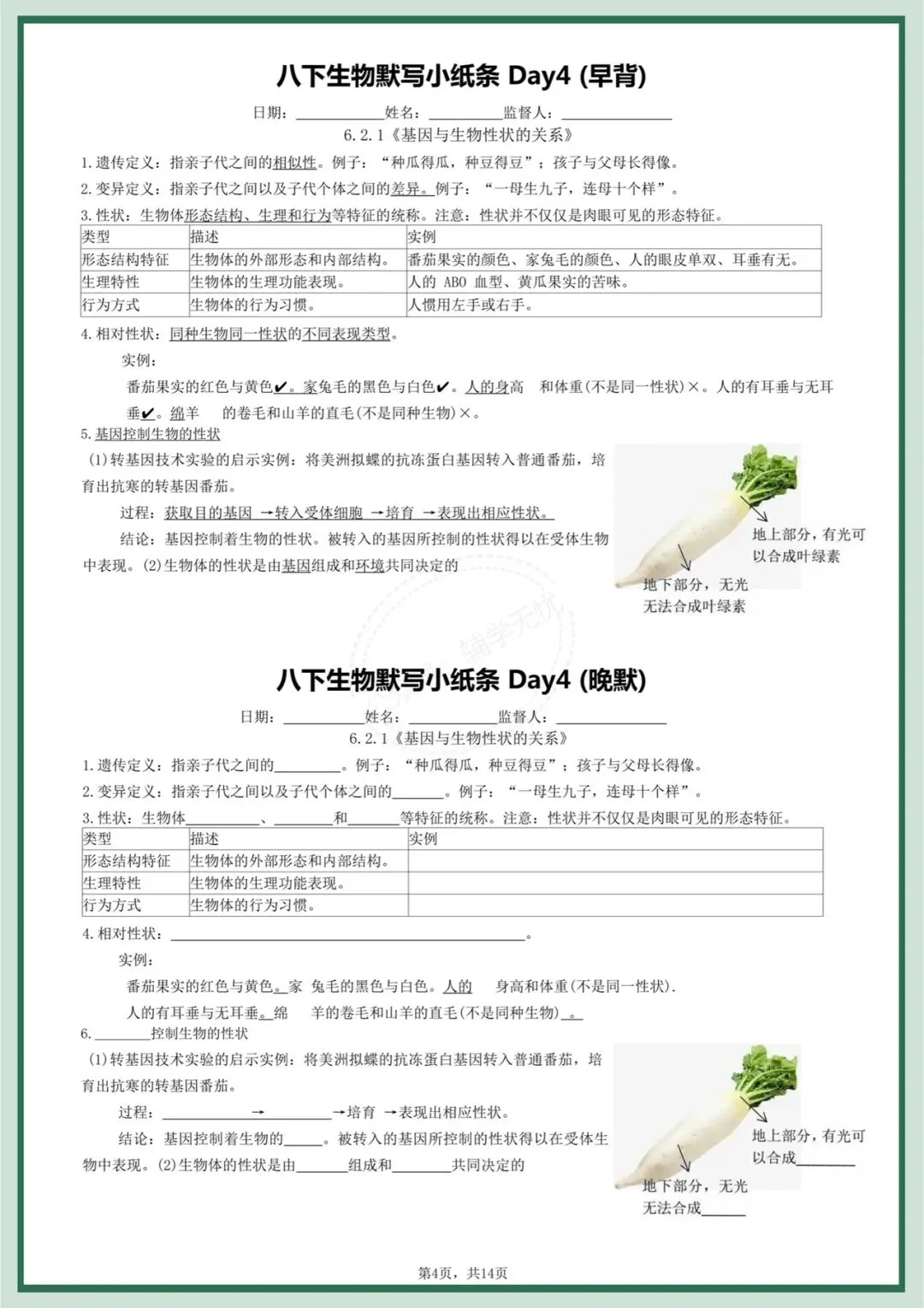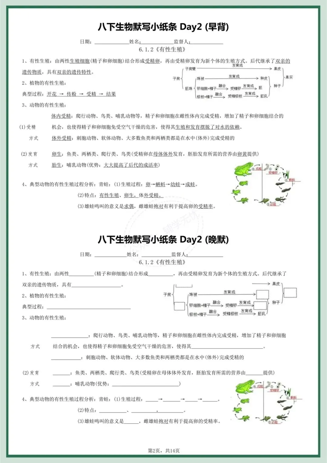 八下生物|2026年春季最新版八年级下册生物每日晨背晚默小纸条,打牢基础必备!完整可打印!
