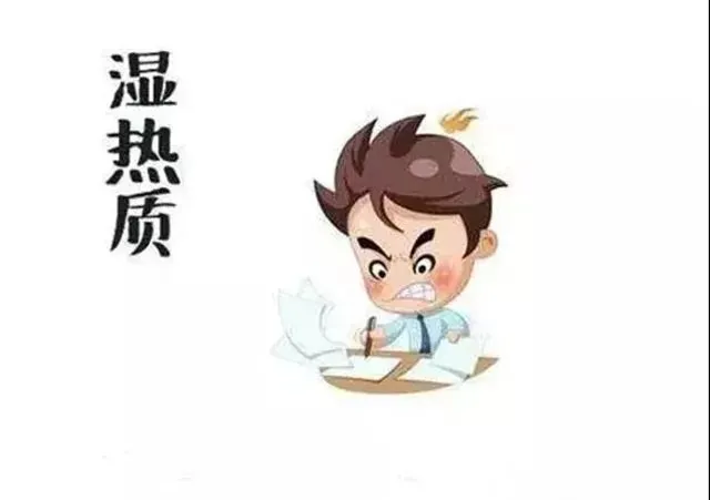 性格多急躁易怒;脸部和鼻尖总是油光发亮,易生粉刺痘痘;一开口就能闻到异味;口苦口干;身体困倦,心烦懈怠;眼睛红赤;大便黏滞不爽,小便发黄发热;舌质偏红,舌苔黄腻;易上火;下阴痒,外阴痒,阴囊潮湿;易得脚气;痛风、盆腔积液;易患泌尿系统感染、前列腺炎等。