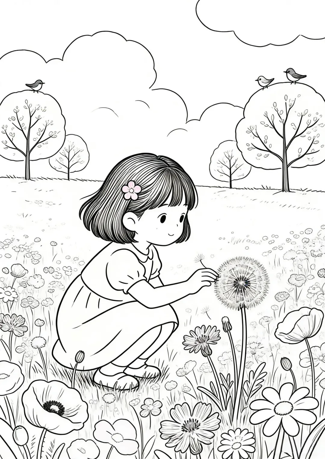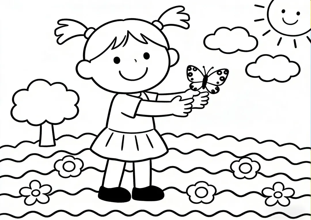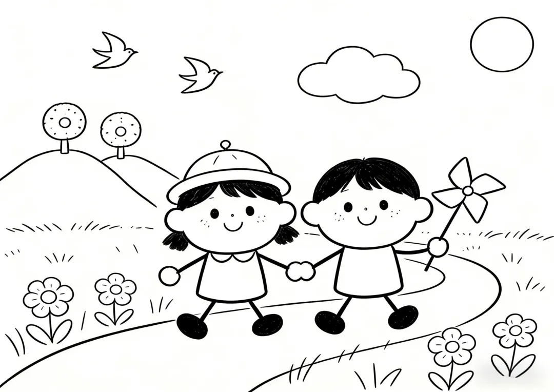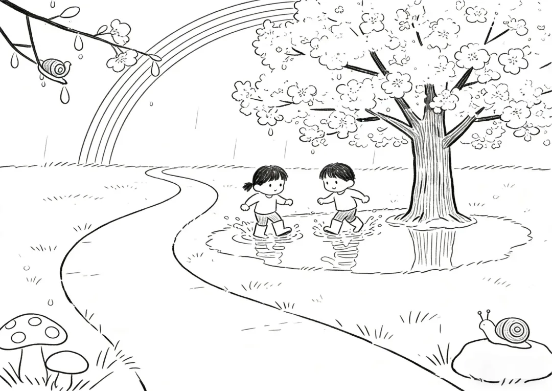 春天简笔画 线稿可打印