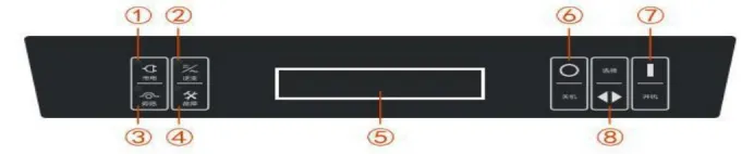 ⑤LCD 显示屏 ⑥关机键 ⑦开机键 ⑧选择键