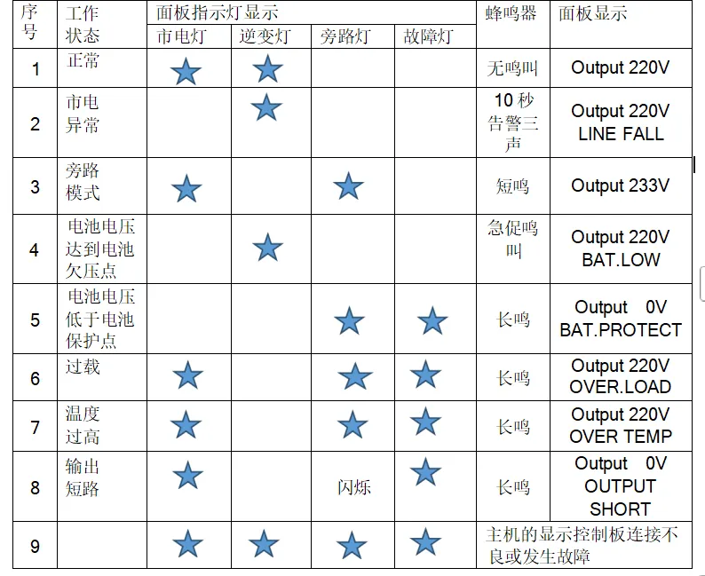 还有就是UPS偶尔会跳旁路模式后长鸣告警,原因是UPS输出后端可能有大功率负载,或者是有漏电,这时候首先需要检查后端负载有无异常,检查无异常,主机按钮”关机“键,故障消除后,再重新按“开机”键,开启逆变器,主机恢复正常逆变模式。