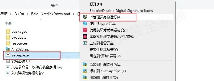 1.打开下载的AI 2023软件安装包,鼠标右击压缩包选择【解压到当前文件夹】。