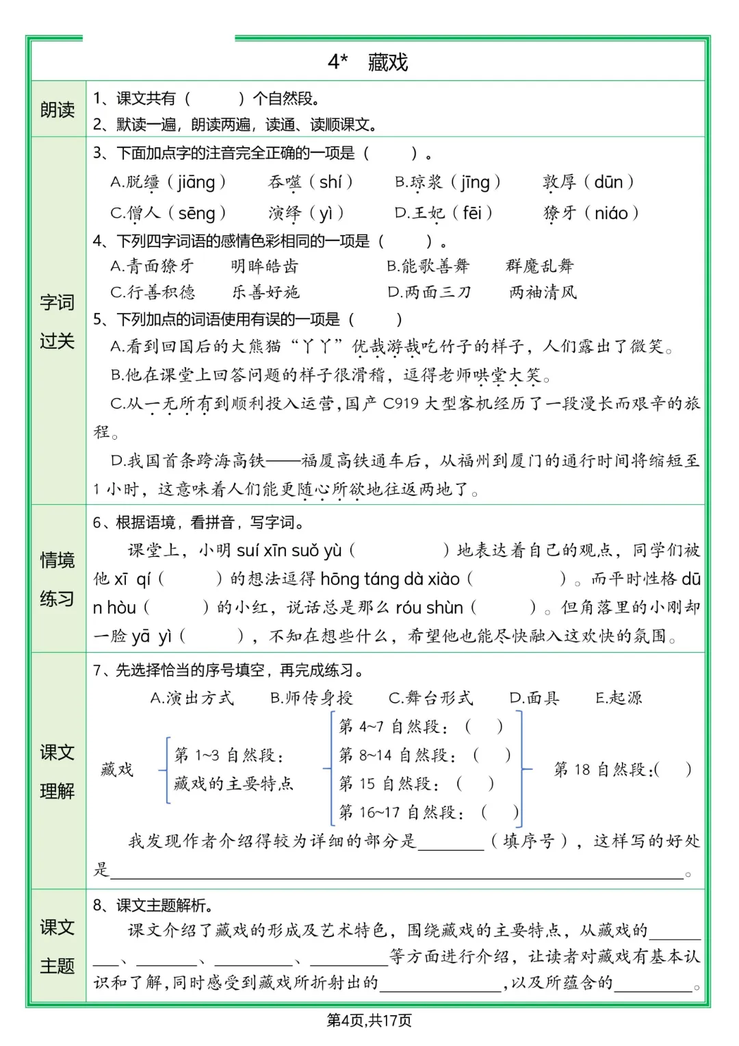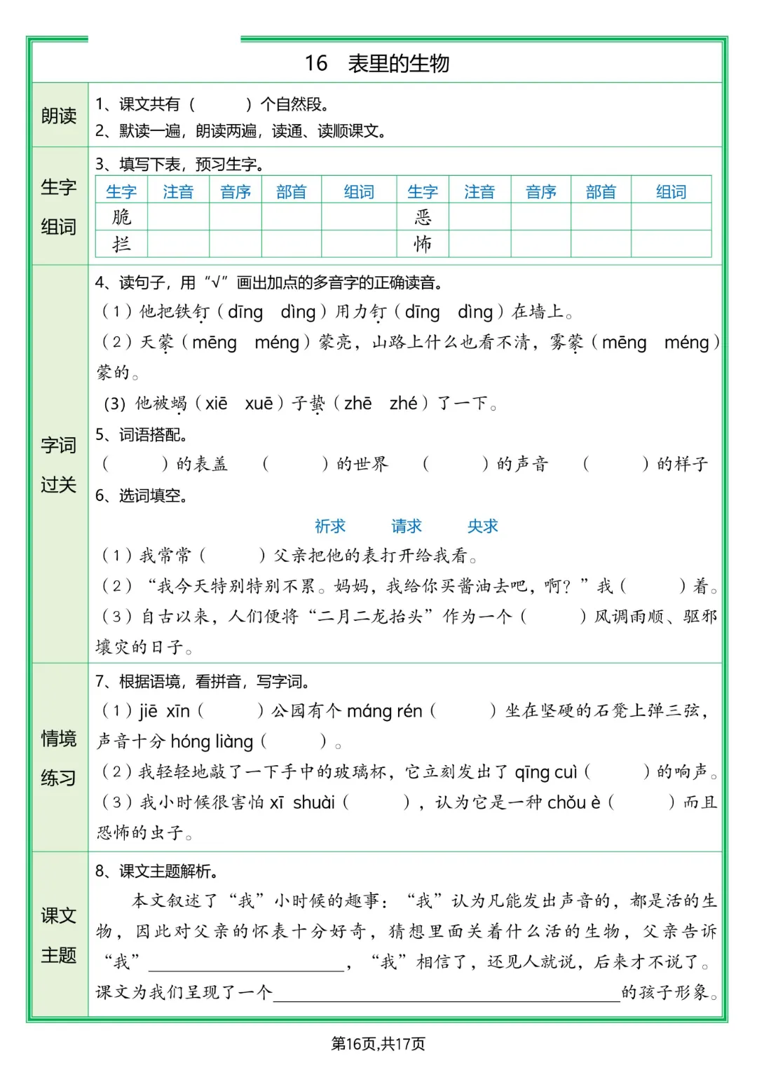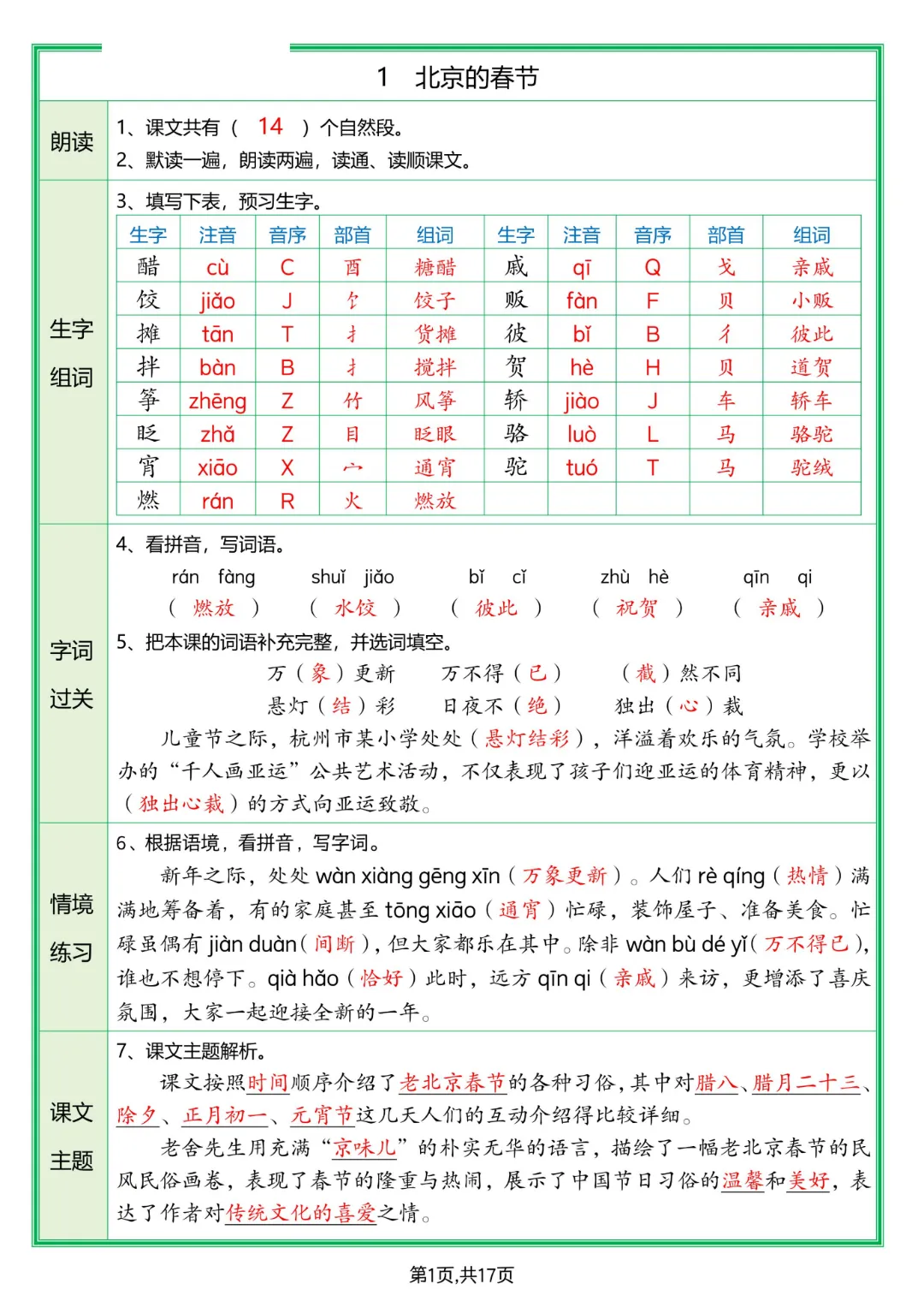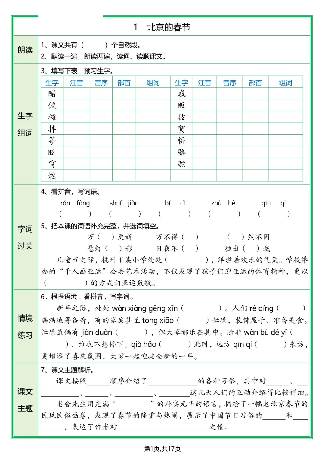 2026春人教统编版六年级下册语文《课文预习》,含详细答案共34页,电子版可打印可下载。围绕六年级下册考试核心,展开练习,帮助孩子深入理解题型,夯实学科基础,培养孩子逻辑思维,提升知识综合运用能力与应试技巧,助力升学能力培养,从从容容游刃有余的度过快乐寒假。欢迎转发分享到班级群, 需要的家长们和老师们抓紧领取一份吧。