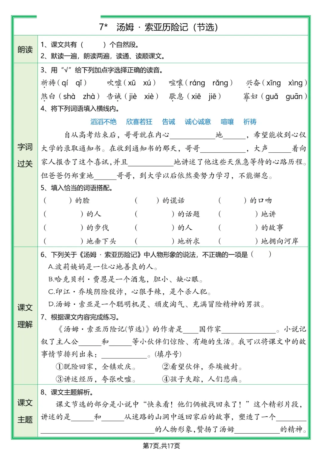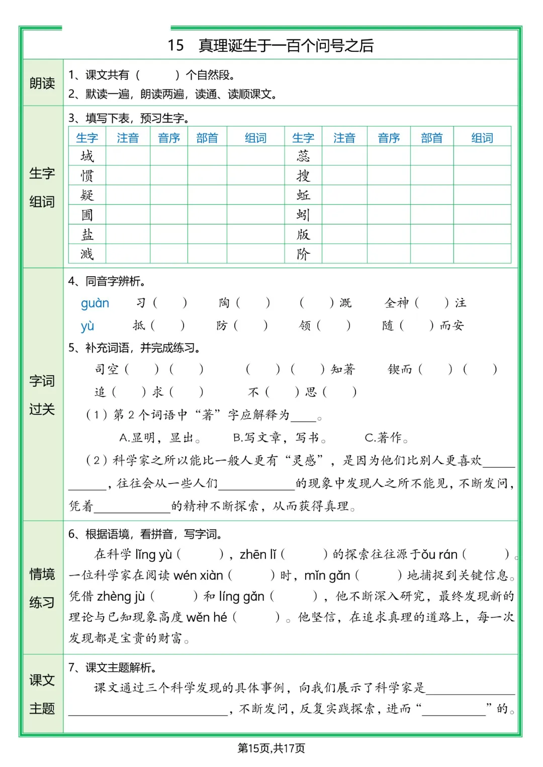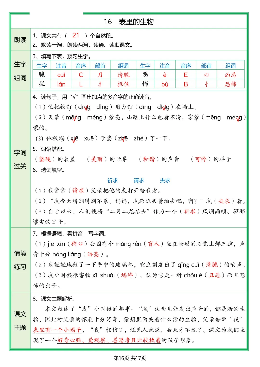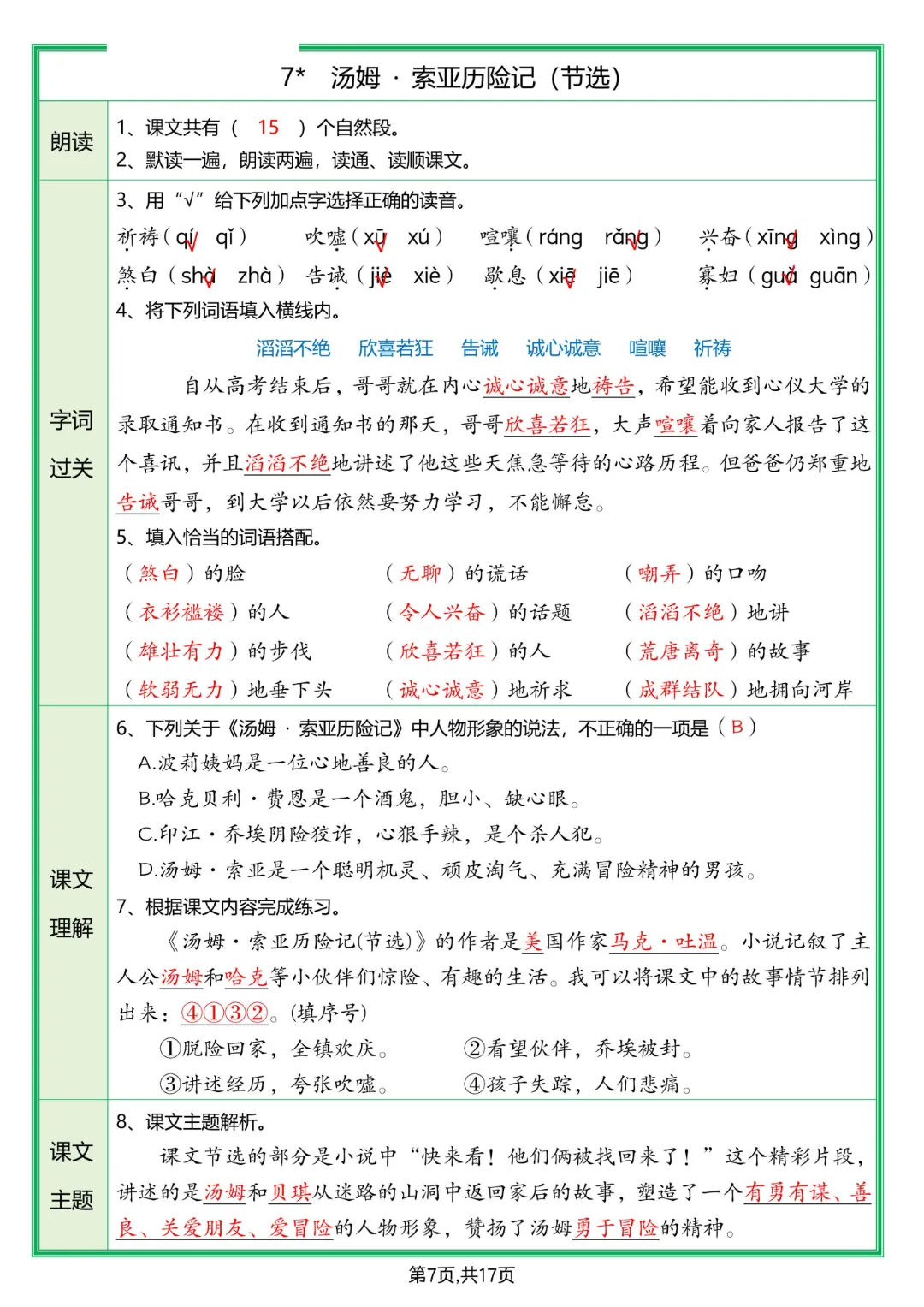 2026春人教统编版六年级下册语文《课文预习》,含详细答案共34页,电子版可打印可下载。围绕六年级下册考试核心,展开练习,帮助孩子深入理解题型,夯实学科基础,培养孩子逻辑思维,提升知识综合运用能力与应试技巧,助力升学能力培养,从从容容游刃有余的度过快乐寒假。欢迎转发分享到班级群, 需要的家长们和老师们抓紧领取一份吧。
