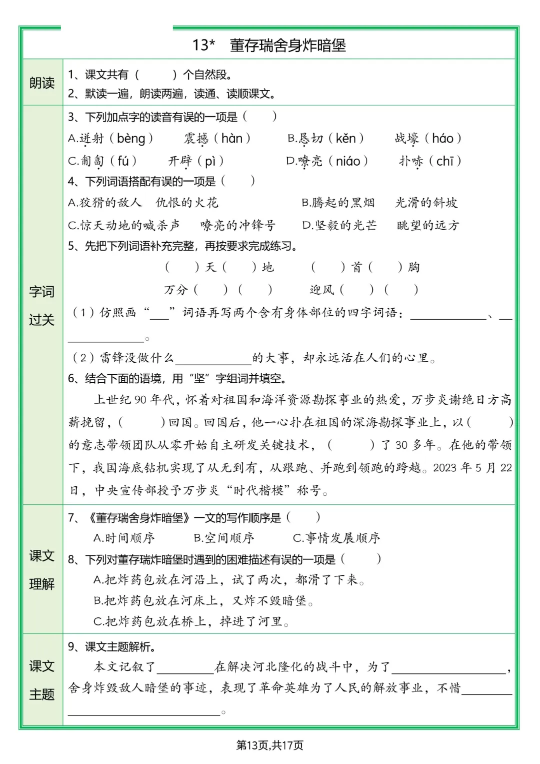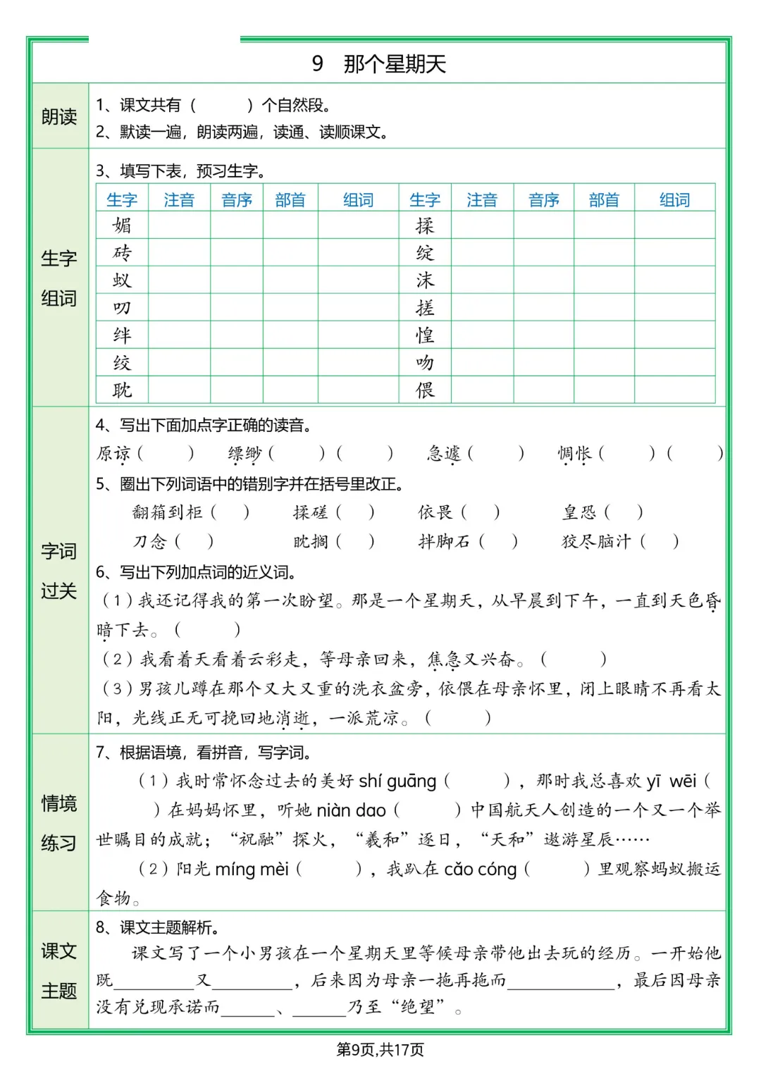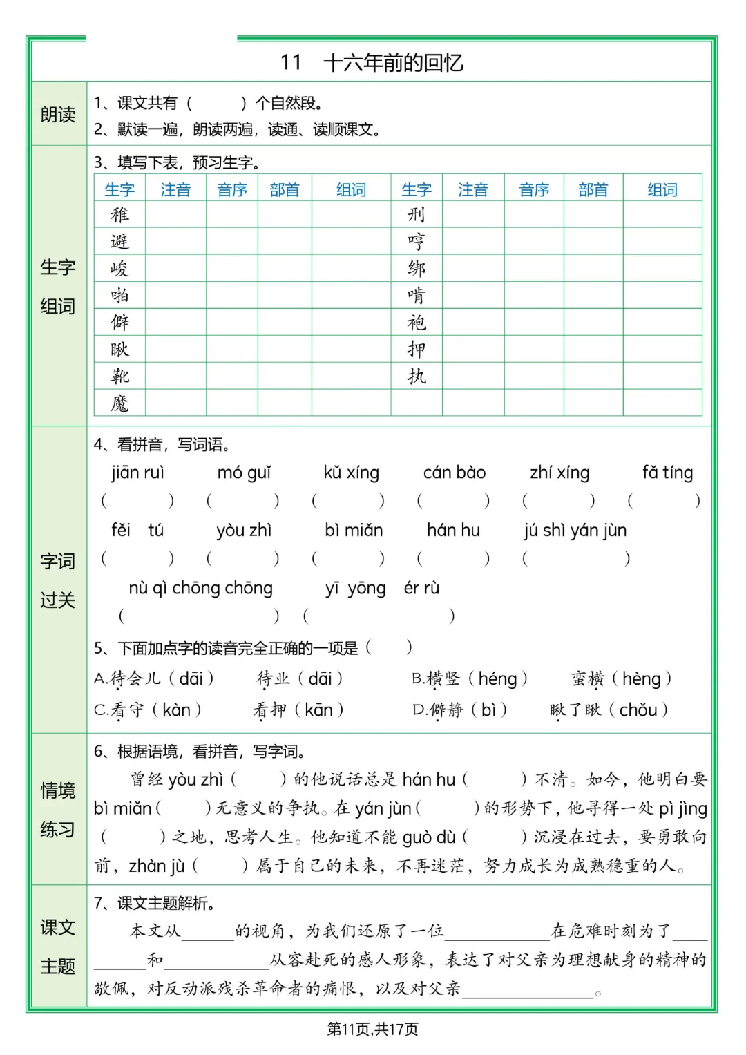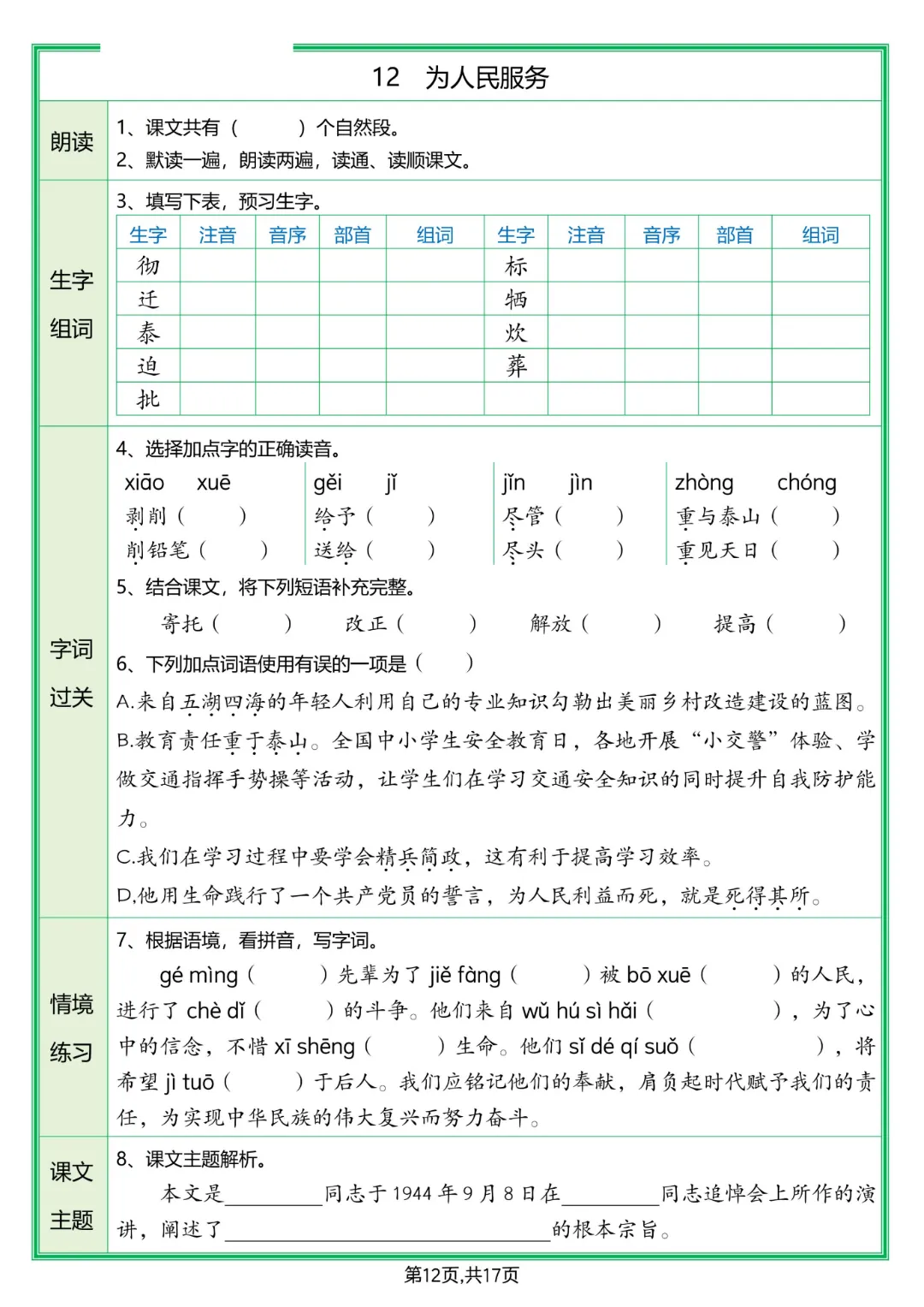 2026春人教统编版六年级下册语文《课文预习》,电子版可打印