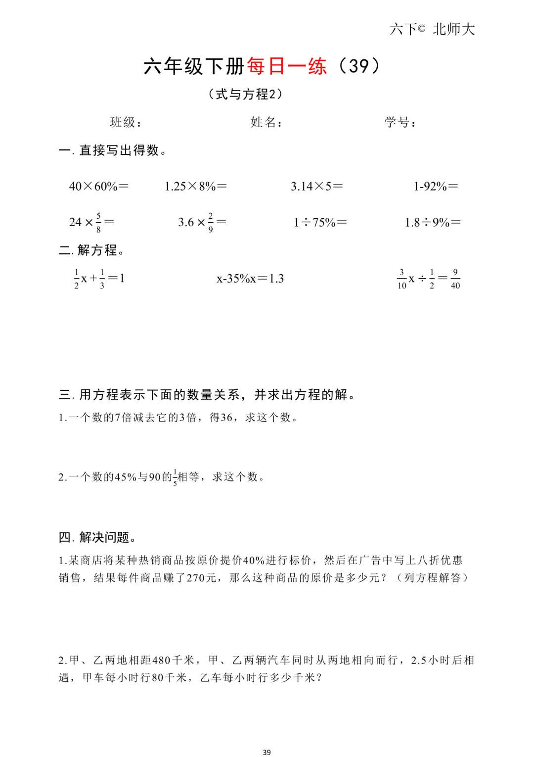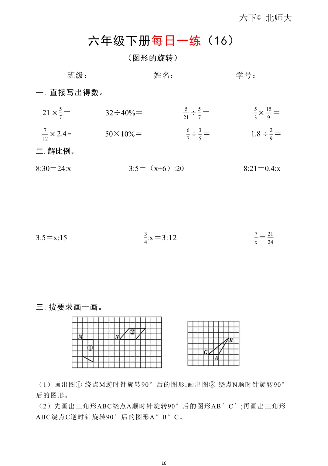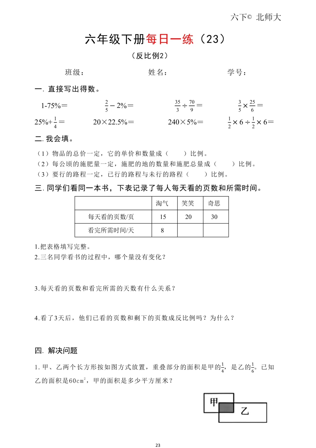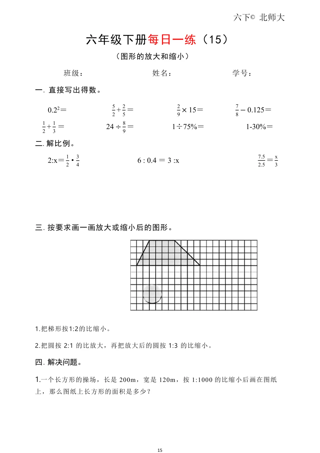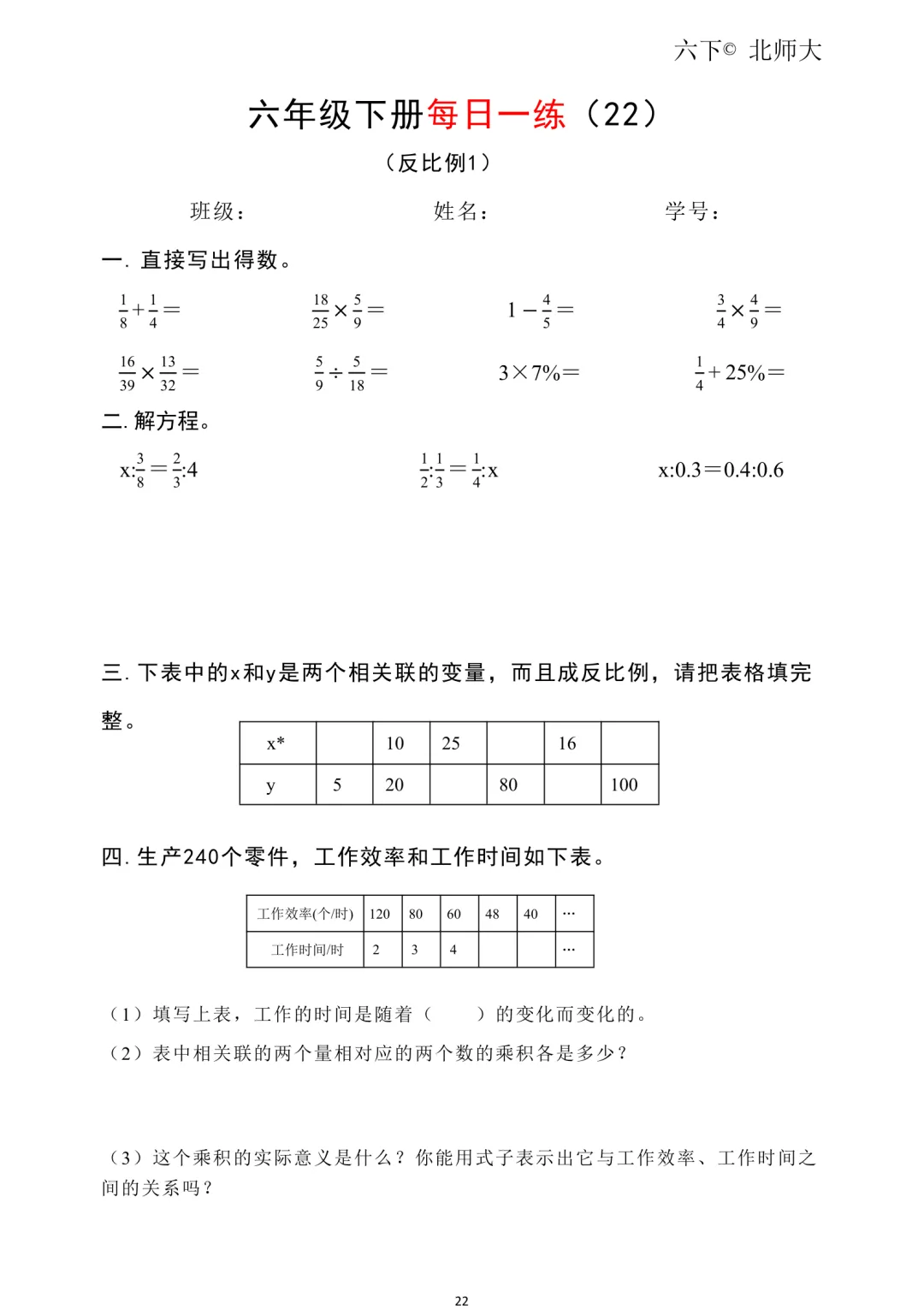 26春新六年级下册北师大版数学《同步课本·一课一练/课时练/课后小测/(含基础篇、提高篇、拓展篇)》高清可打印
