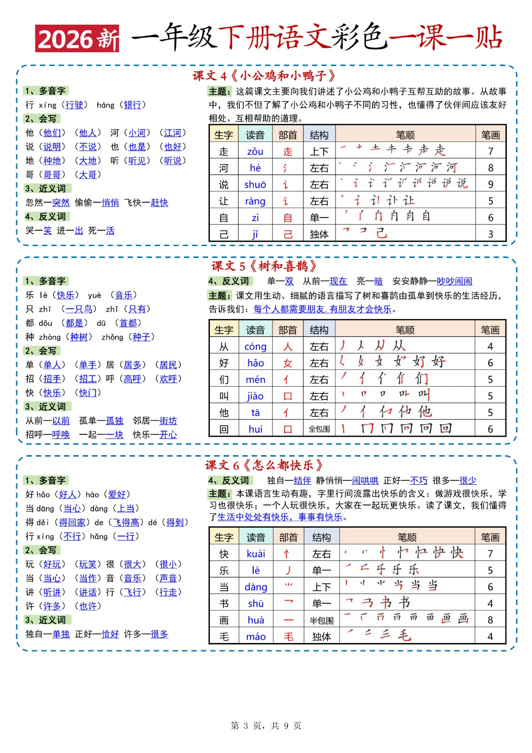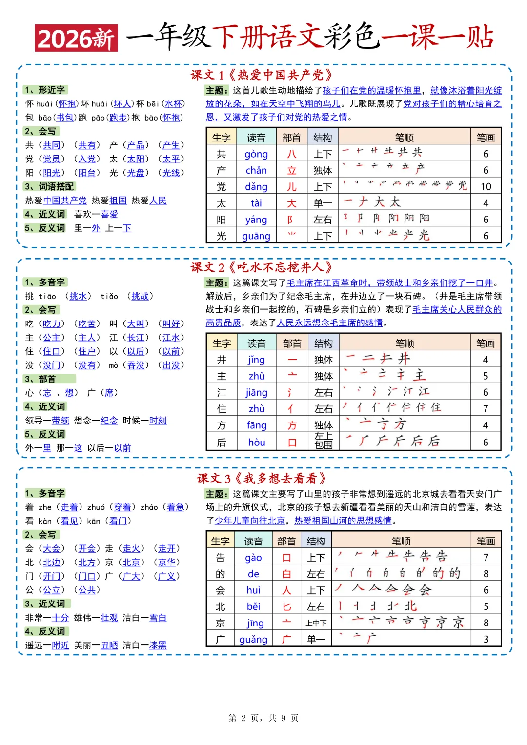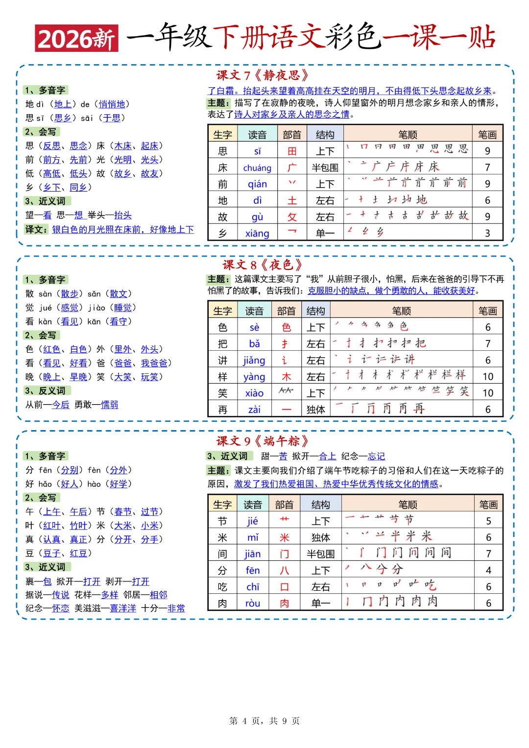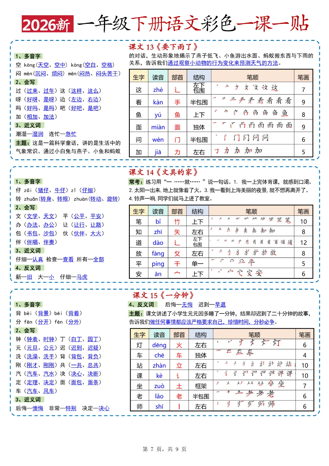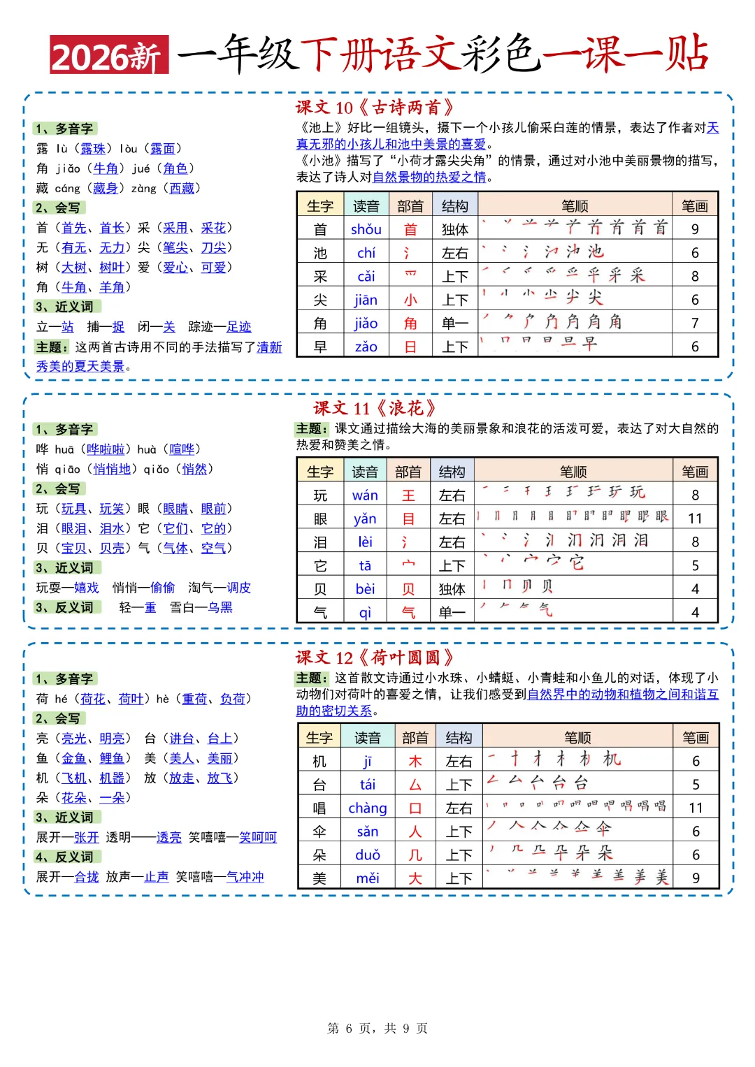 26年春新版一年级下人教部编版《语文全册重点课课贴》(彩色版)高清完整可打印